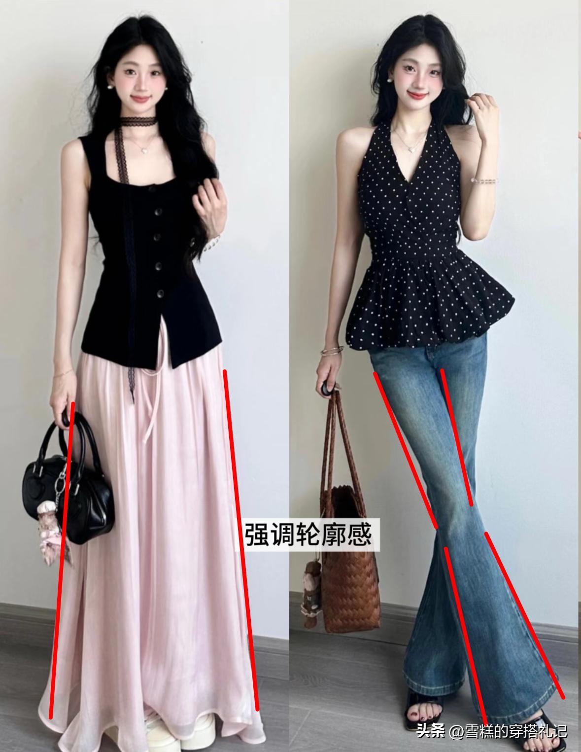 大多數人爲了遮肉,會盲目的選擇鬆垮肥大的長褲長裙,穿在身上不僅很拖沓,而且走起路來也會感到特別累贅,建議可以選擇線條筆直流暢的下裝,延伸性更強。