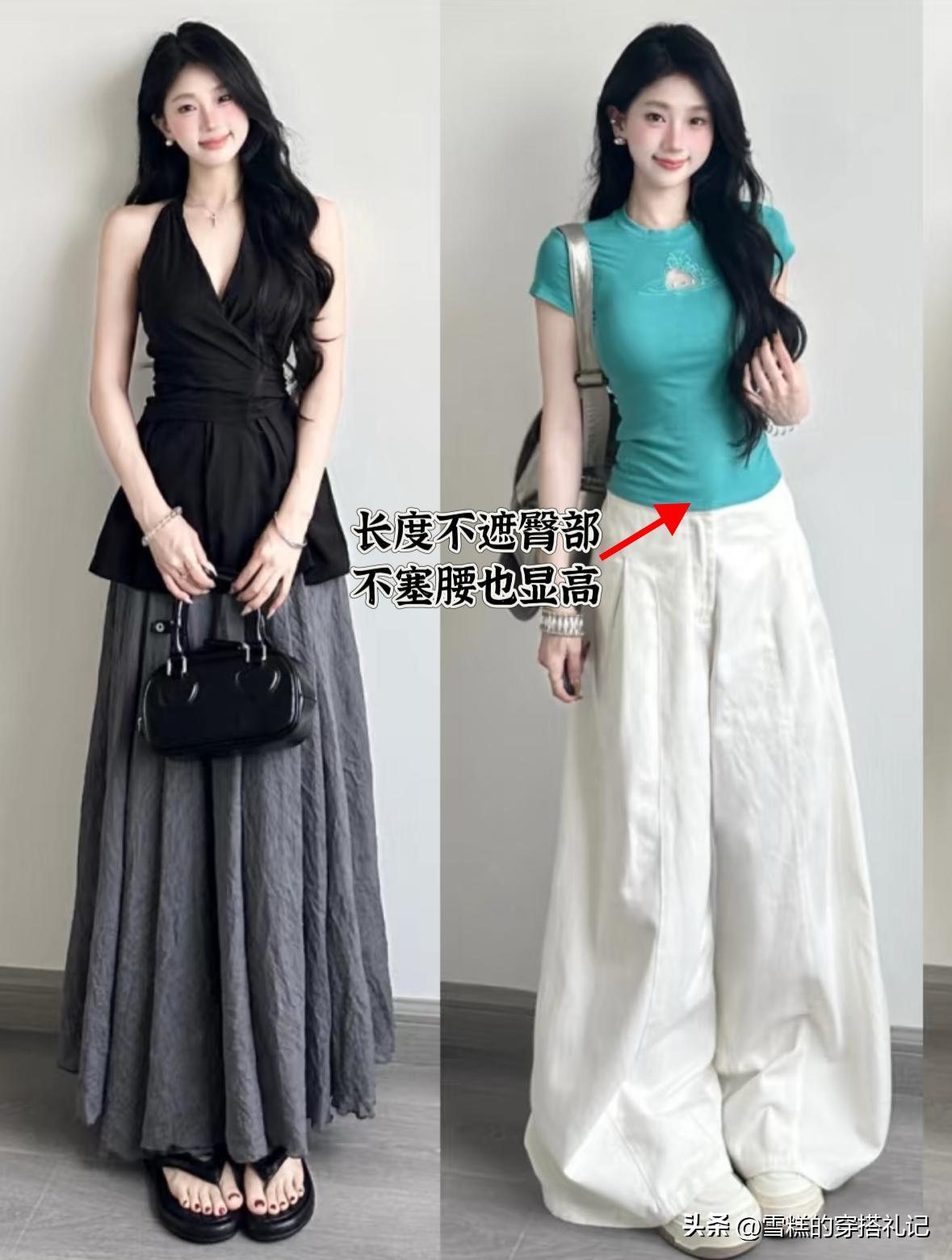 無論是長褲還是長裙,都要優先選擇高腰線的設計,腰線貼合度高,顯瘦效果更好,再配合上寬鬆有度的版型,分分鐘藏住下身短板,但前提是要牢記“寬鬆≠鬆垮”的法則。