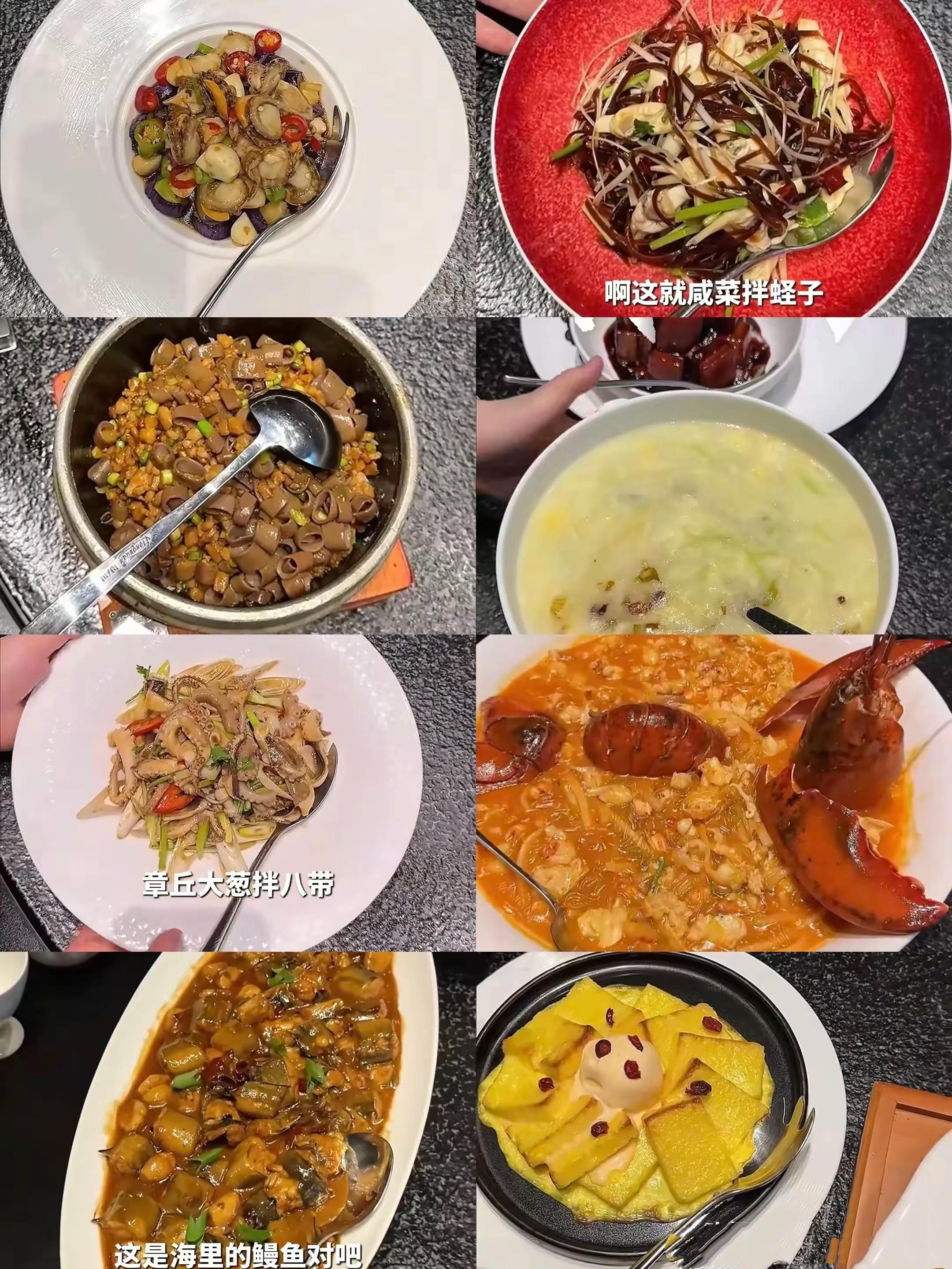 一家四口點了9個菜,每個菜都是當地的特色美食。海鮮湯、鹹菜拌蟶子、紅燒鰻魚、章丘大蔥拌蒜等等。菜量非常大,一家四口吃9個菜也是挺奢侈的,不得不說明星就是有錢。