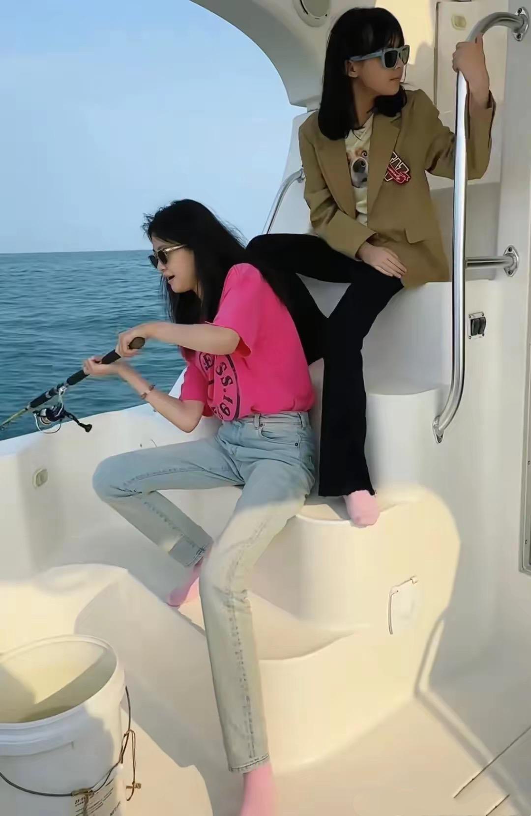 一開始鮑蕾還坐在遊輪上吹海風,享受着片刻的寧靜與美好。後來她也加入到海釣的行列,鮑蕾釣魚的姿勢好酷啊,她看着非常認真,也能感受到有魚兒在咬鉤。