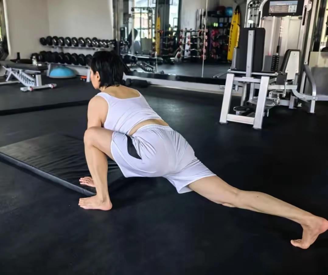 當52歲的袁立曬出健身照,真是驚豔了衆人。她穿着一件白色運動背心、黑色運動褲,正在練習力量。