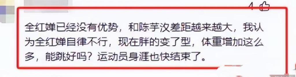 從那之後不管全紅嬋發什麼動態,總有幾個人在裏面挑毛病,發出刺耳的聲音。揪着她的體重問題不放、甚至一次次的攻擊。