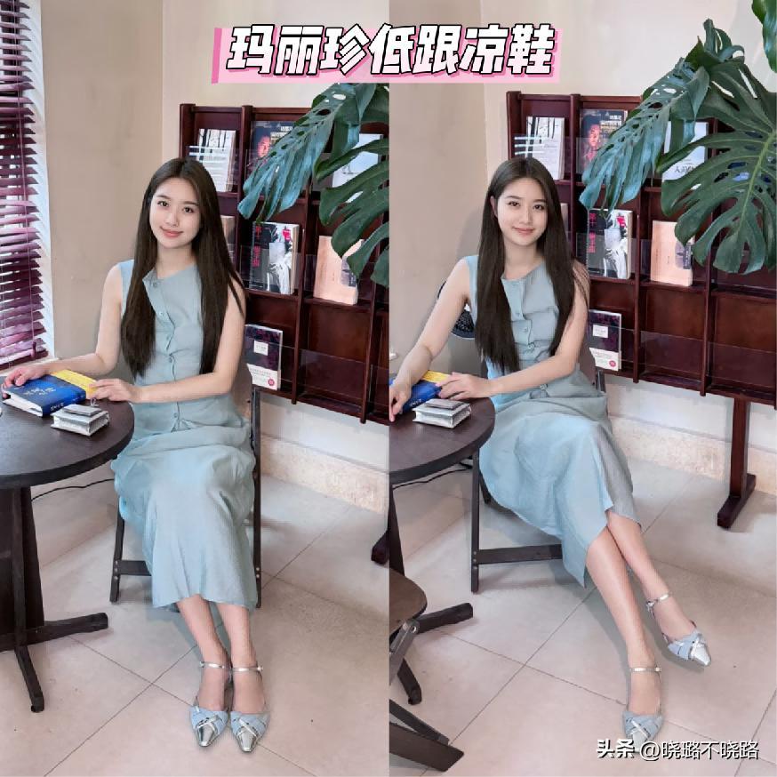 最後一款推薦的涼鞋是屬於低跟設計的瑪麗珍涼鞋,瑪麗珍這一款鞋型的搭配本身就是屬於比較時髦和復古的存在,但如果做成涼鞋的話,尤其是像尖頭的設計,就還是要推薦各位女性可以首選淺色調是最好的。