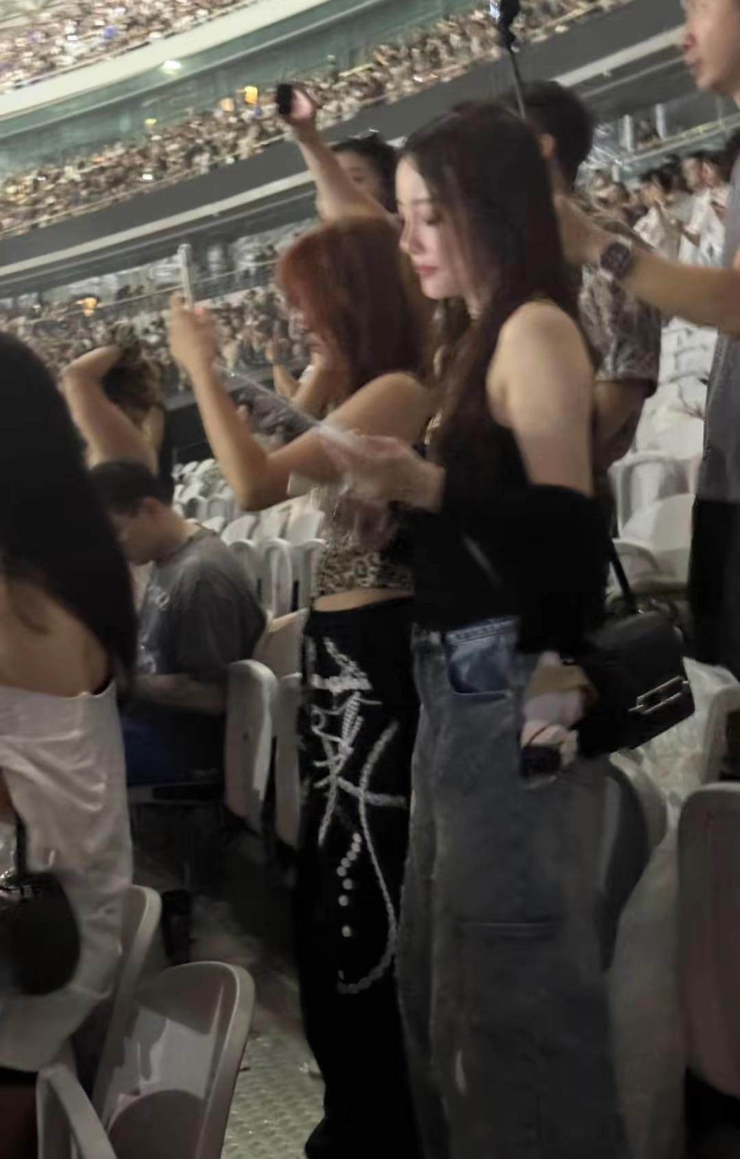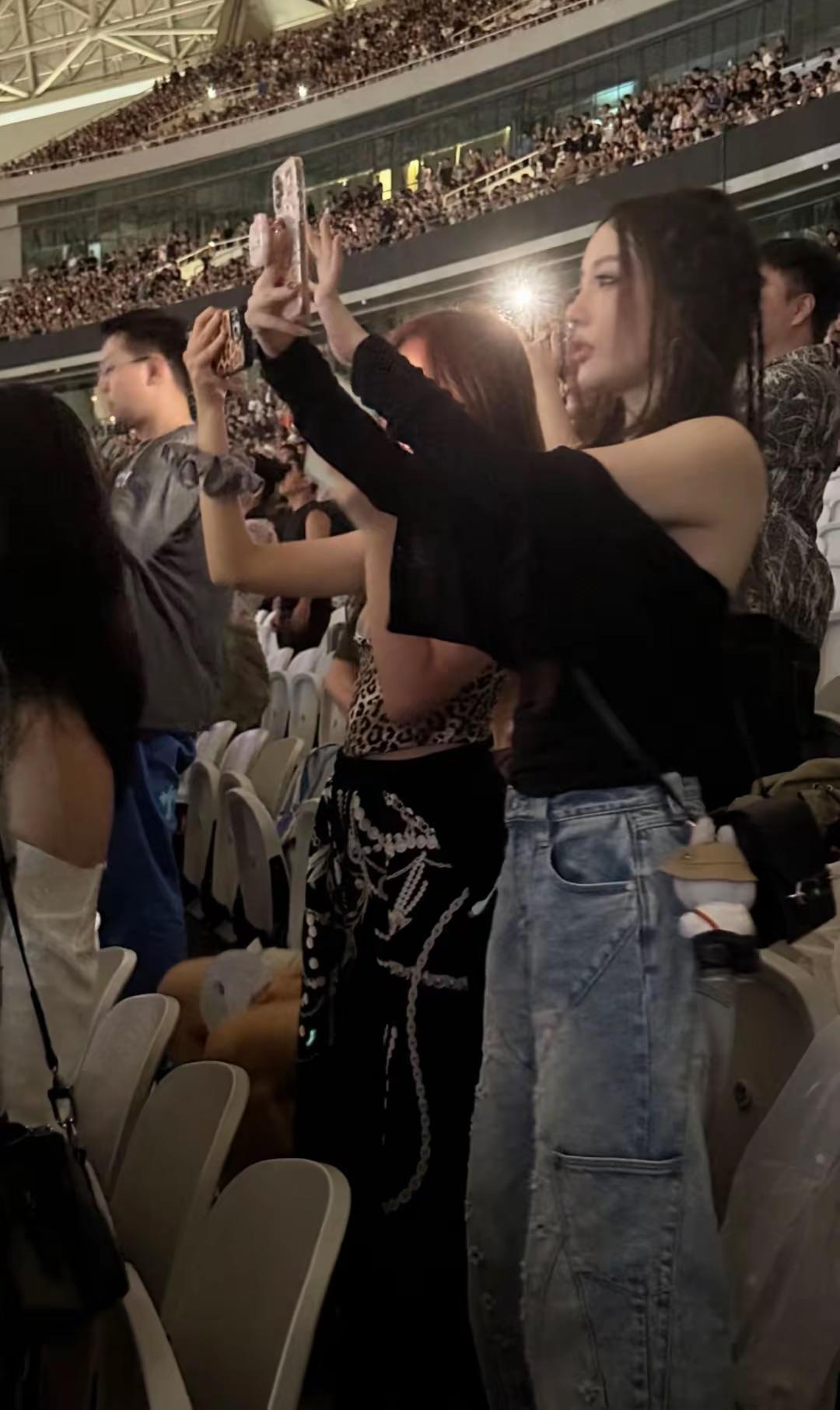 演唱會開始的時候,李小璐和甜馨都激動的站起來了,她們舉着手機不停的拍照。甜馨難得打扮性感,穿了豹紋的吊帶衫、高腰的闊腿褲,小蠻腰很纖細。這樣的甜馨也讓人眼前一亮。