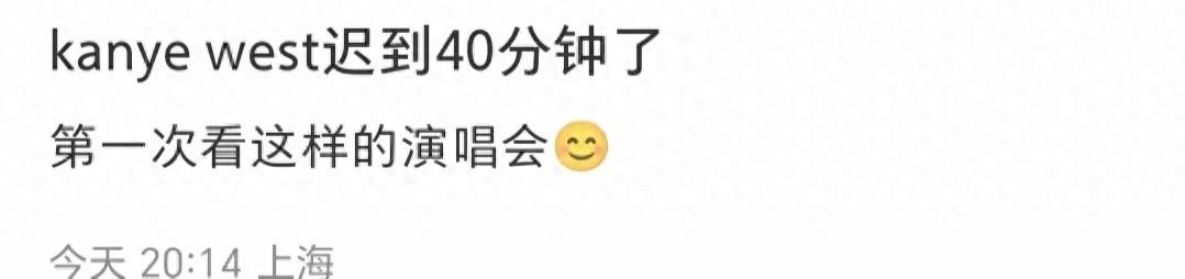 7月12日,美國知名說唱歌手侃爺在上海開演唱會。雖然他本人比原定時間遲到了40分鐘,儘管廣闊的舞臺上只有他一個人、穿着普通的衛衣拿着一隻話筒,就完成了整場演唱會。