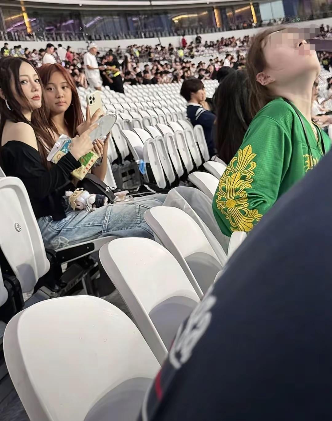 可能爲了看這場演唱會,李小璐母女也做了很多準備。母女倆的打扮,真是太惹眼了。甜馨和李小璐早早的就到場了,她們坐在比較靠前排的位置,李小璐還不停的補妝。
