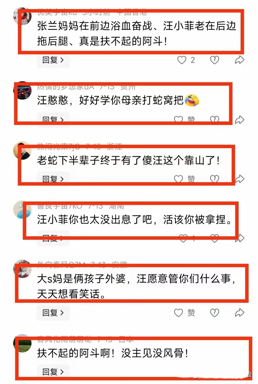 網友怒其不爭、替網友心酸。這些年汪小菲真是過的挺難的,甚至還一度因爲S家差點丟了事業。汪小菲一個勁的息事寧人,也被網友認爲不夠孝順、張蘭在前面浴血奮戰,汪小菲總是拖後腿。