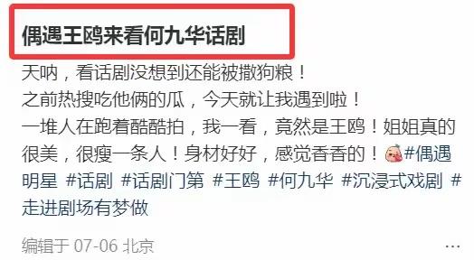 儘管如此,王鷗還是現身了何九華的話劇,不知道是單純支持話劇,還是支持何九華。按理說明星們都會更注意影響,不必要的事情也不想給自己添麻煩。