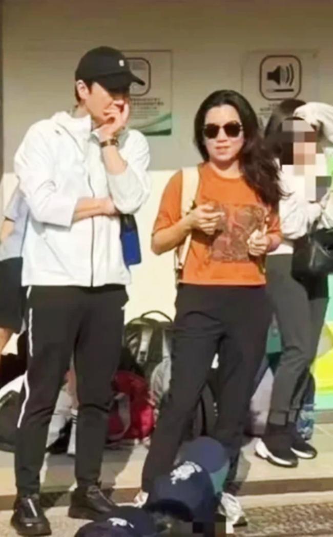 在與黎明一同外出時,她的這件黑色印花襯衫與黎明的簡約穿搭相得益彰,兩人站在一起,宛如 “郎騎竹馬來,繞牀弄青梅” 的畫面,溫馨而和諧。