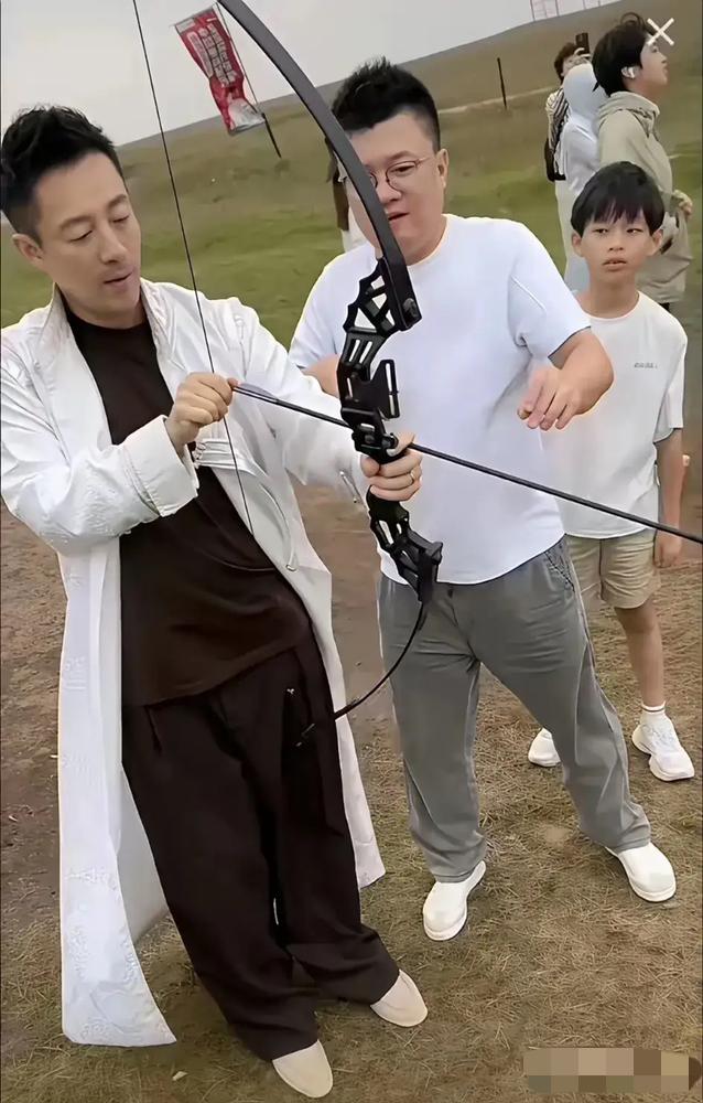 陪完妻子和女兒,汪小菲還要陪兒子。小霖兒沒有換蒙古服,可能是不喜歡。他更喜歡刺激性的項目,比如拉弓射箭。