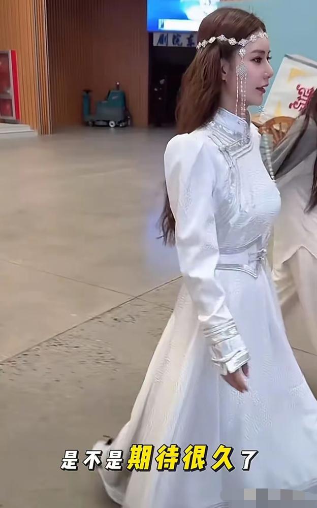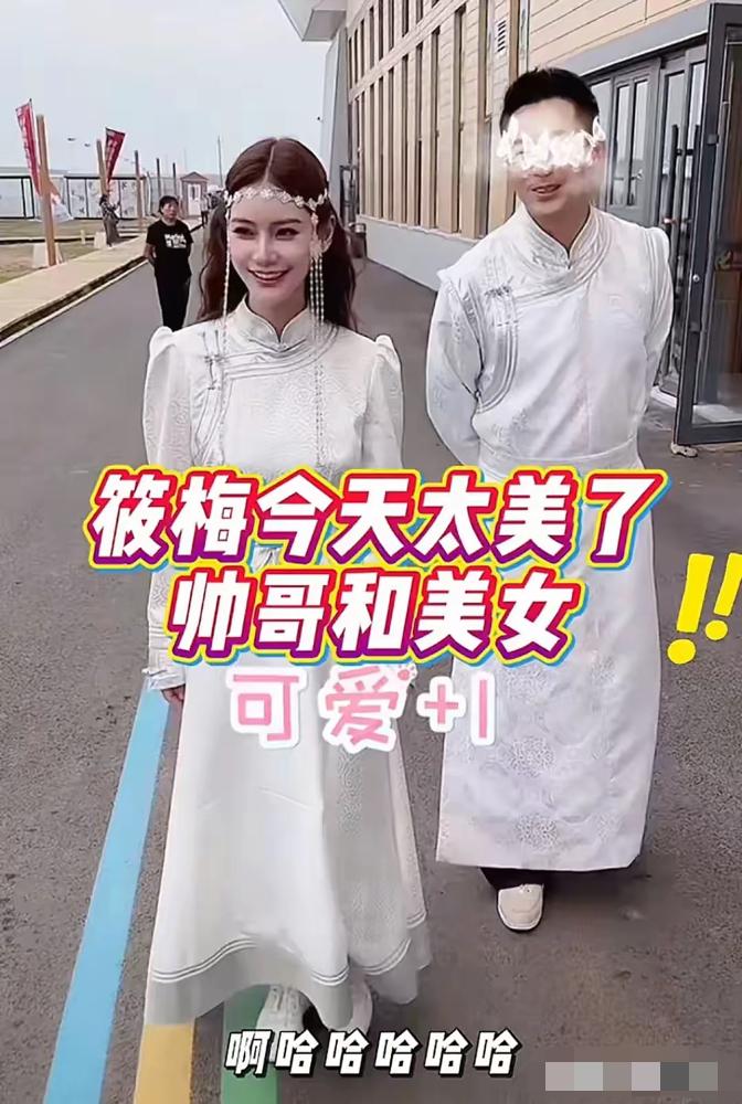 不得不說,馬筱梅真是穿什麼衣服都好看。她一頭披肩捲髮,配上好看的公主額飾,真是太美了。首要的蒙古袍,穿在馬筱梅身上又美又颯,有一種策馬天涯的帥氣。
