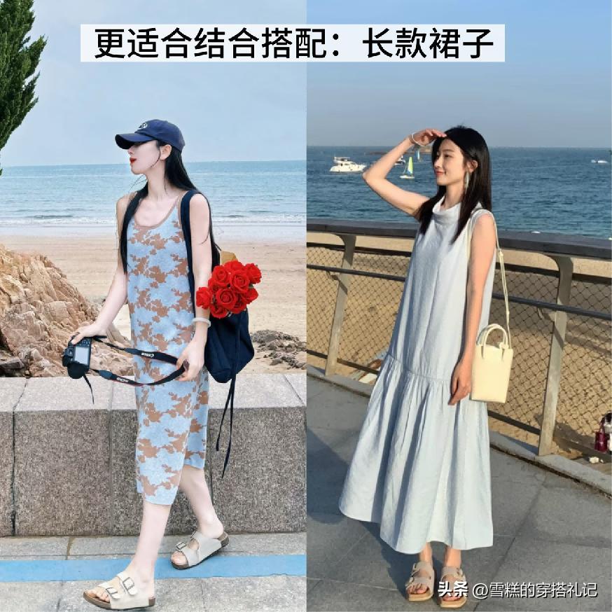 像這樣的涼鞋在進行搭配的時候,其實更加適合運用入手一些長款的設計裙裝,整體的鬆弛以及自然舒適的感覺是要被襯托出來的,建議屏幕前的各位女性在出行遊玩或者是日常出行的時候就可以將其進行選擇搭配。但也要記得涼鞋搭配的時候是要將腳踝的部位裸露出來的,這樣更加具有比例優勢以及層次感。