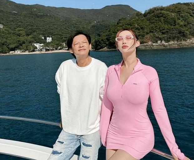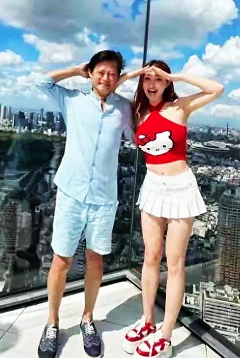 65歲歌手莫華倫與35歲嬌妻同遊,一個老年裝一個超短裙,似兩代人