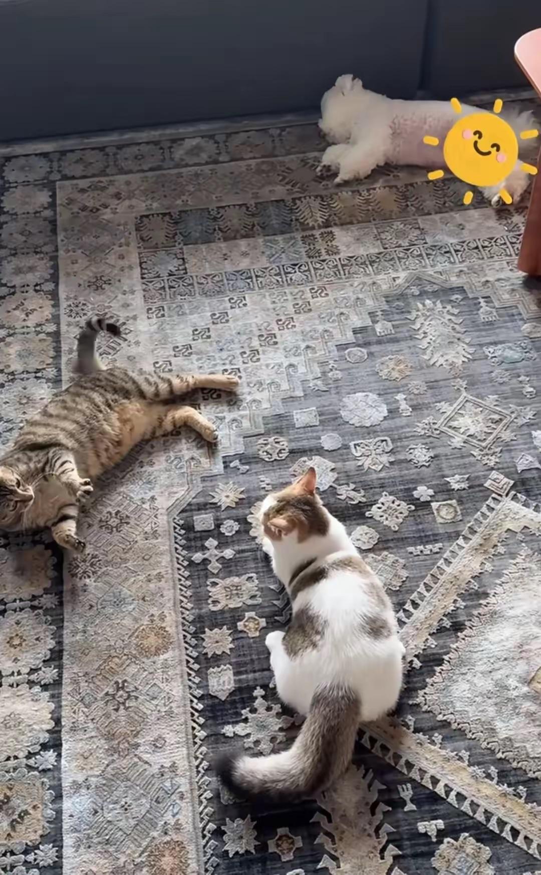 張馨予和何捷的家,非常有溫度。他們養了幾隻貓貓狗狗,一起生活很快樂。家裏鋪着很昂貴的地毯,但是被貓狗弄髒了、也沒有及時清理,非常有生活氣息。
