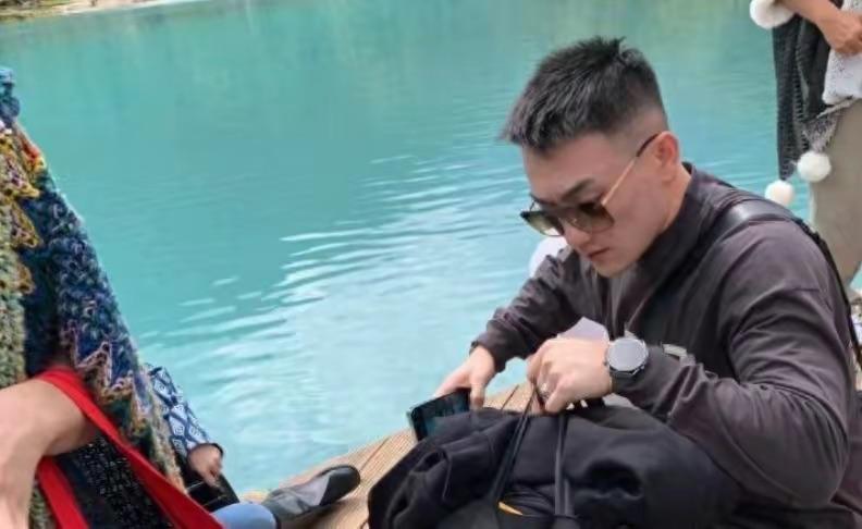 37歲的何捷,一身腱子肉、非常帥氣。他穿着黑色襯衫、帶着墨鏡,身形俊朗有力,跟這樣的老公出行還有什麼保鏢啊,也太有安全感了。