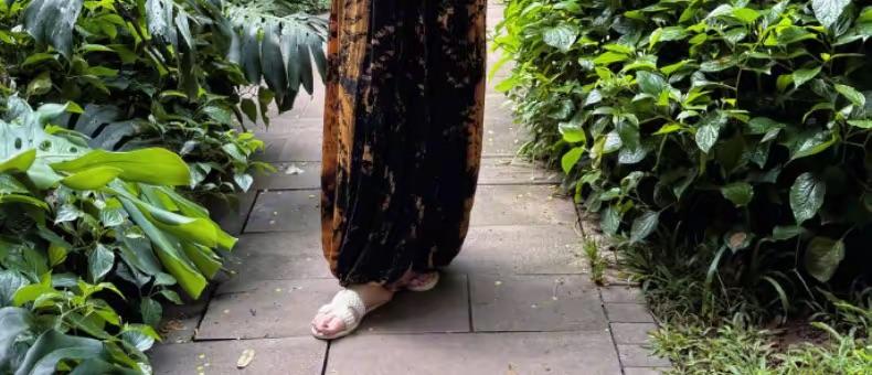 張馨予的打扮,真是超級接地氣。他穿了一件民族風的半身裙,搭配了白色的涼拖。這雙涼拖並不是什麼搭配,同款只要20塊錢,真是太便宜了。
