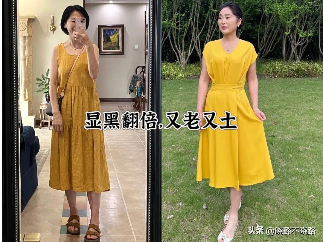 土黃色真的是被大家瘋狂踩雷的一種顏色,尤其這種顏色還是今年的流行色系之一,不少短袖長裙都是以這個色系爲主,但當你買回家試穿之後,真的巨後悔,本來就暗沉的皮膚更加暗沉,顯得整個人一點氣色都沒有,而且還會破壞整體的和諧度。所以不管你今年多大年齡,都不建議你嘗試這種顏色,真的很容易影響你的膚色。