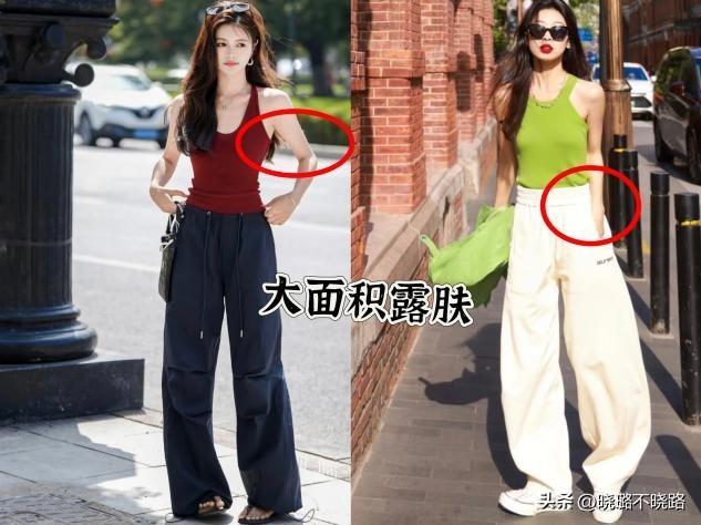 如果全身上下都是偏暗一些的彩色,那麼大家也需要注意露膚,可以換成這種露肩以及露腰的短袖,瞬間襯托出時尚度與輕盈度,然後用小面積的淺色進行綜合,讓整體的搭配更加高級大氣,關鍵完全不用擔心不適配的問題,淺色能夠化解突兀感,讓你的造型更加吸睛洋氣。