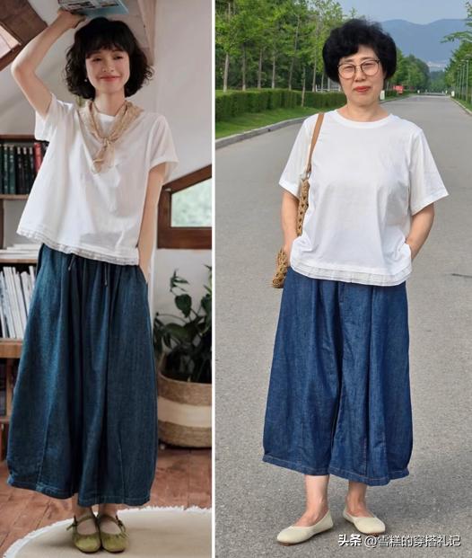 夏天白短袖是再常見不過的單品,它適合各種年齡層次的女人穿,中年女人穿它乾淨整潔,還能減齡,搭配裙子褲子都不容易踩雷,是百搭又不容易出錯的單品。