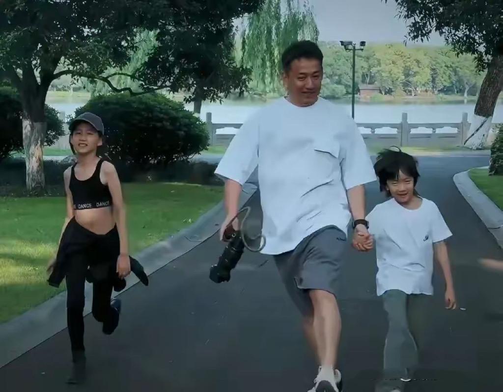 陪着孩子一起成長,牽着孩子們的手蹦蹦跳跳,黃磊的身形也顯得輕盈、年輕起來。黃磊和孫莉生了三個孩子,也早就兒女雙全了,家庭生活幸福又美滿。