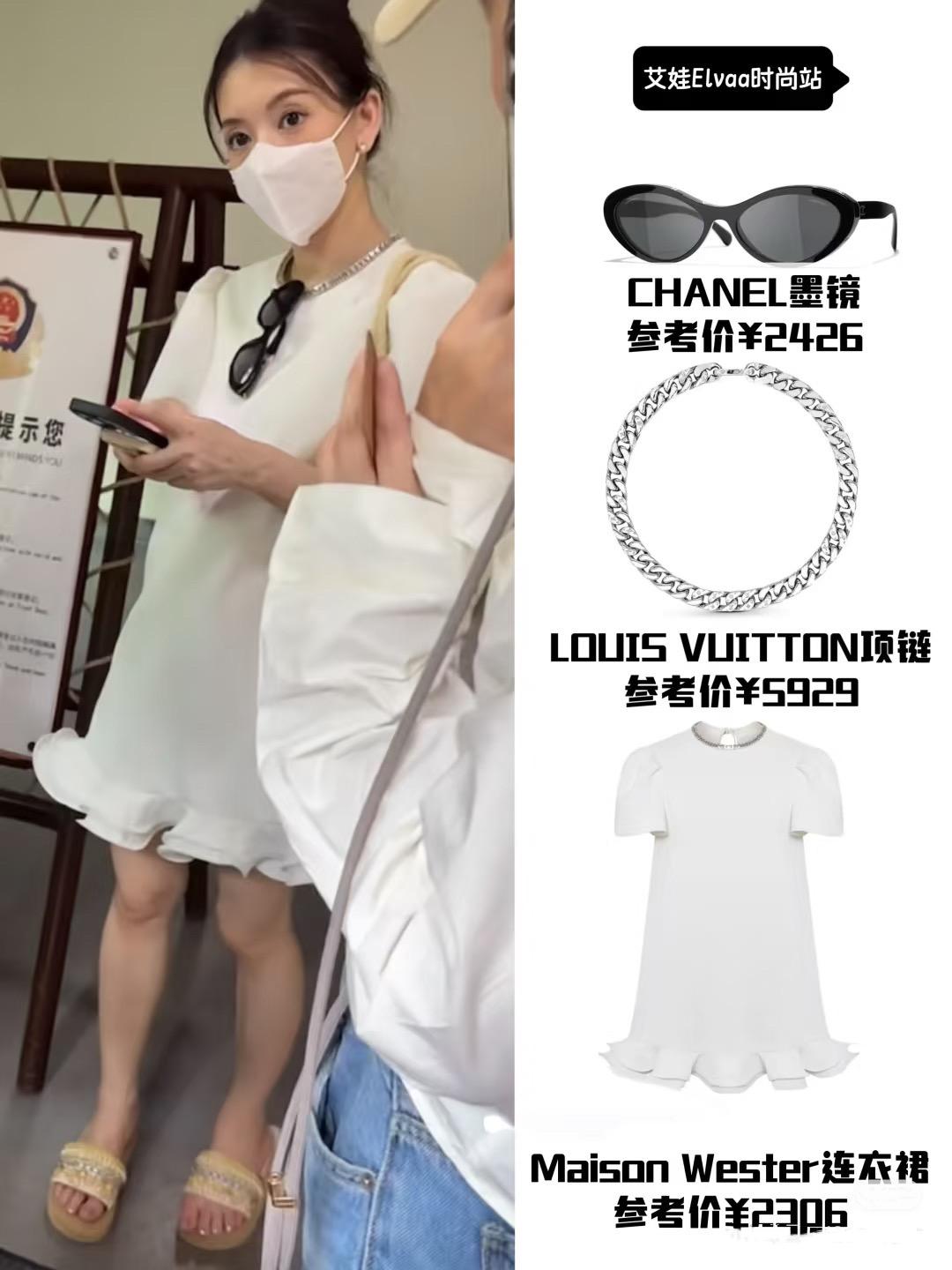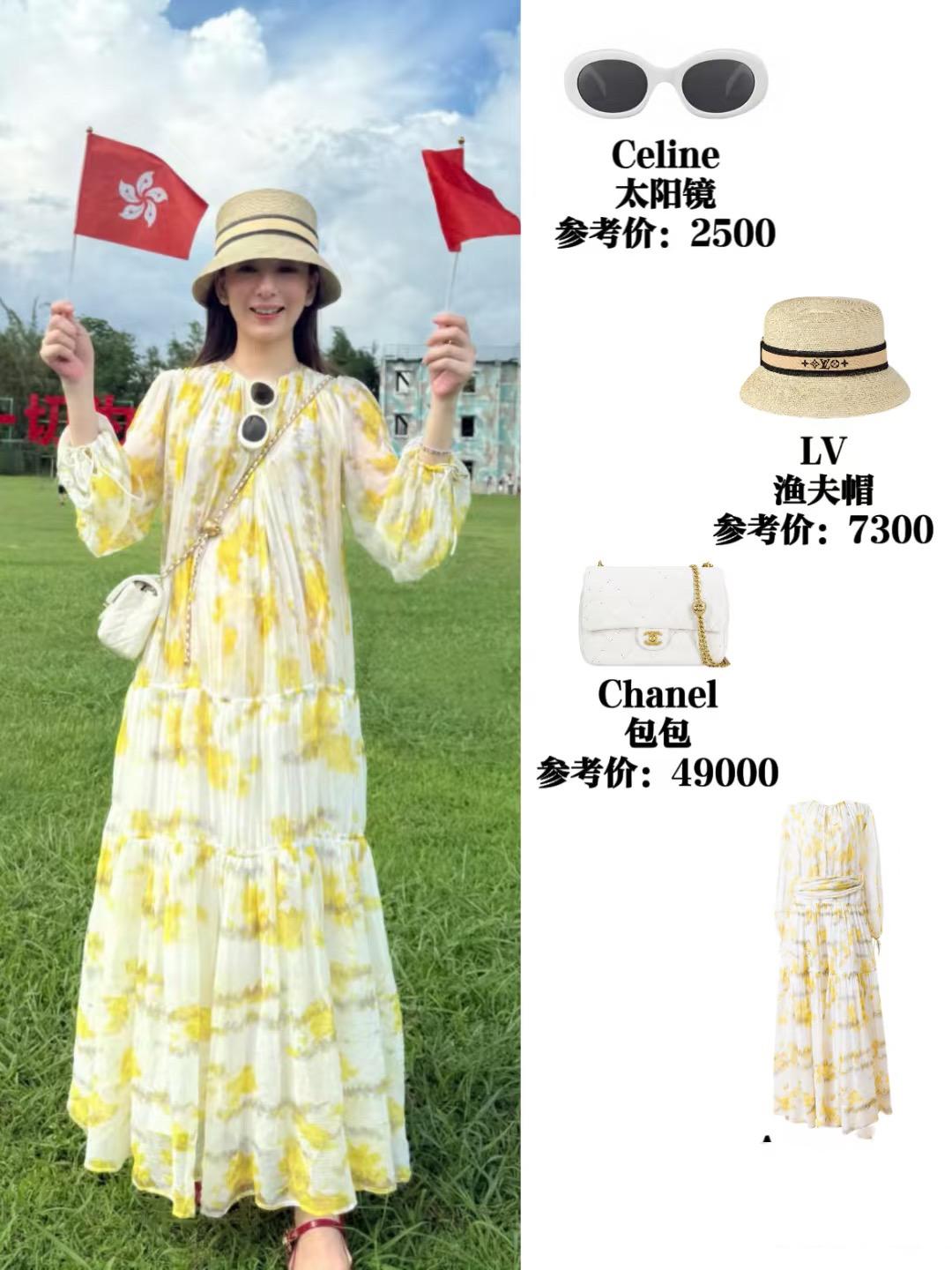 偶爾也會穿着寬鬆舒適的連衣裙,長袖連衣裙組合黃白配色,有一種溫柔乾淨的美好。方媛戴一頂LV的帽子,揹着香奈兒的包包,一身行頭小10W,她真的是越來越捨得給自己花錢了。