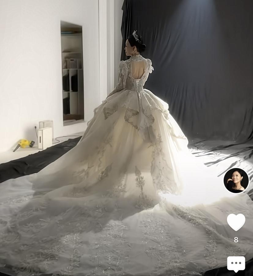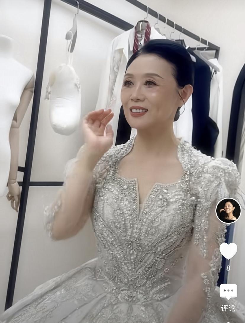穿着白色婚紗的吳瓊,身材非常苗條、姿態也是格外的高貴。她這件婚紗、不僅有大大的裙襬,還有露背的設計,按理說更適合身材苗條的年輕人,沒想到63歲吳瓊身材超級好,穿上華麗又端莊,