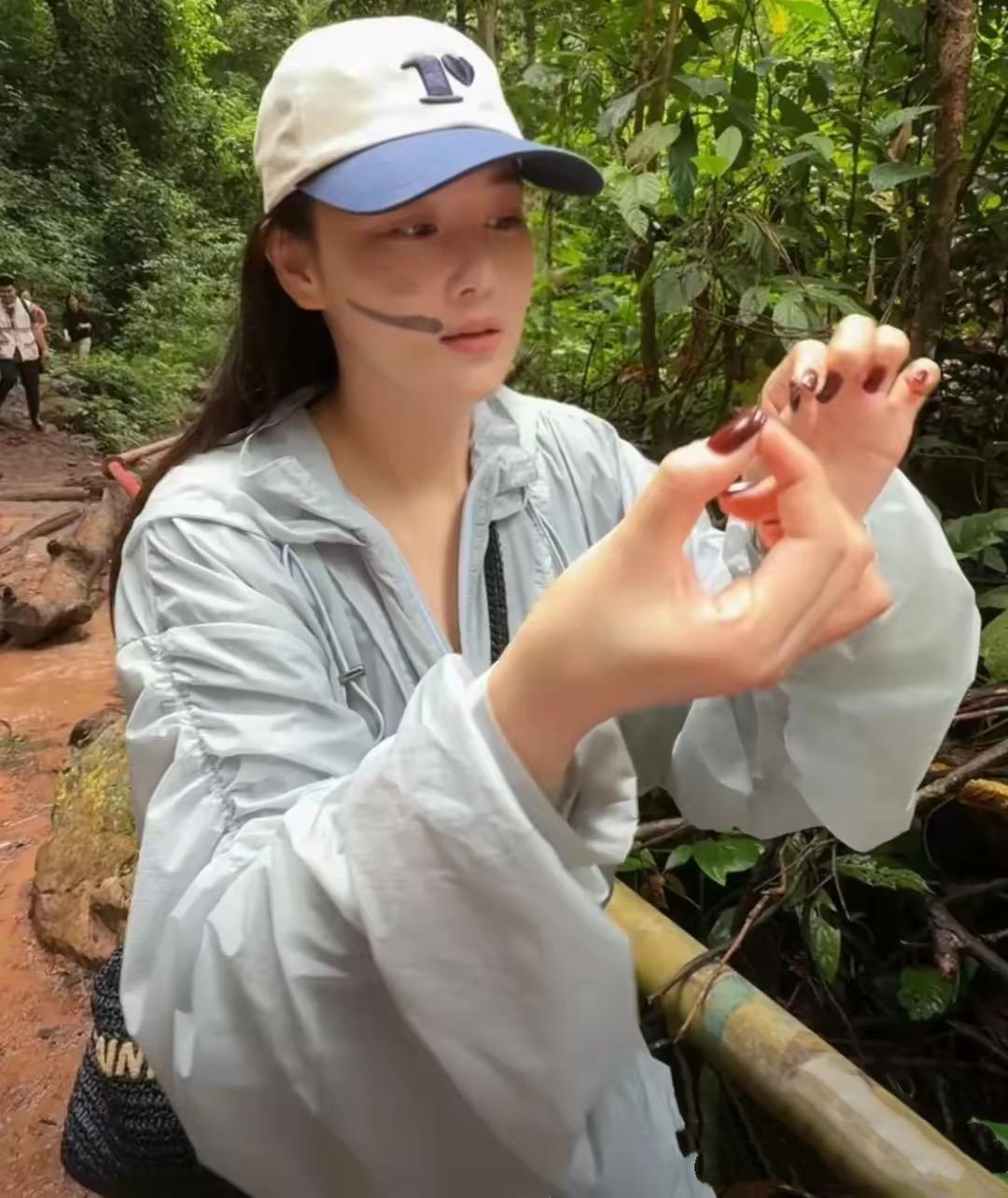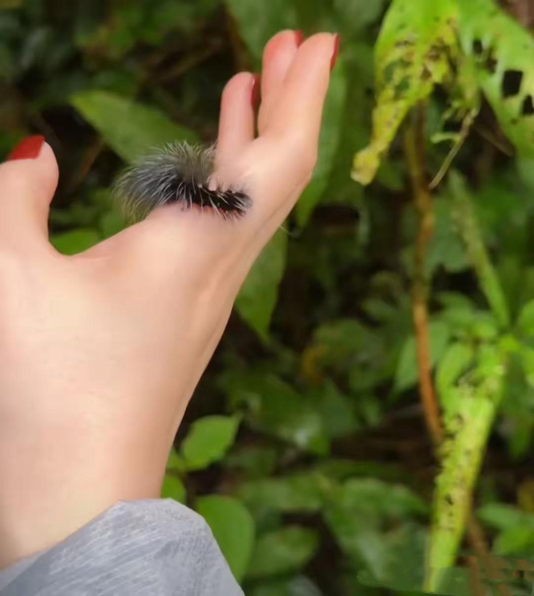 在張馨予手上的,是一隻毛毛蟲,不少小女生都害怕這種小蟲子,不過張馨予倒是挺勇敢的,她直接上手那毛毛蟲,還很鎮定的拍下了照片。