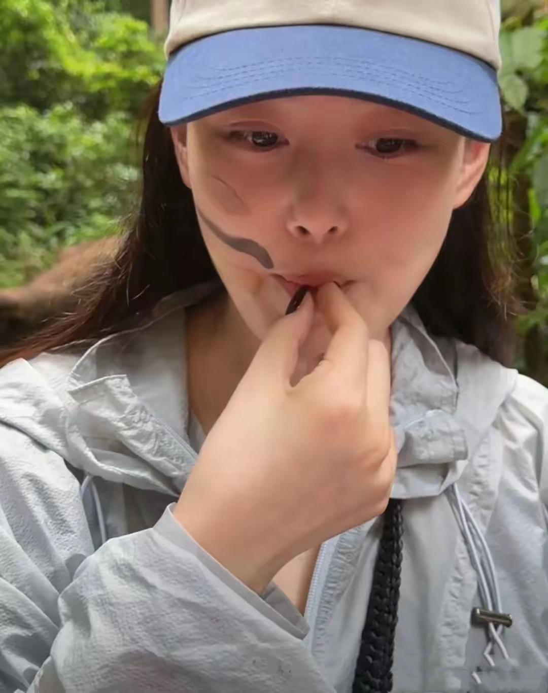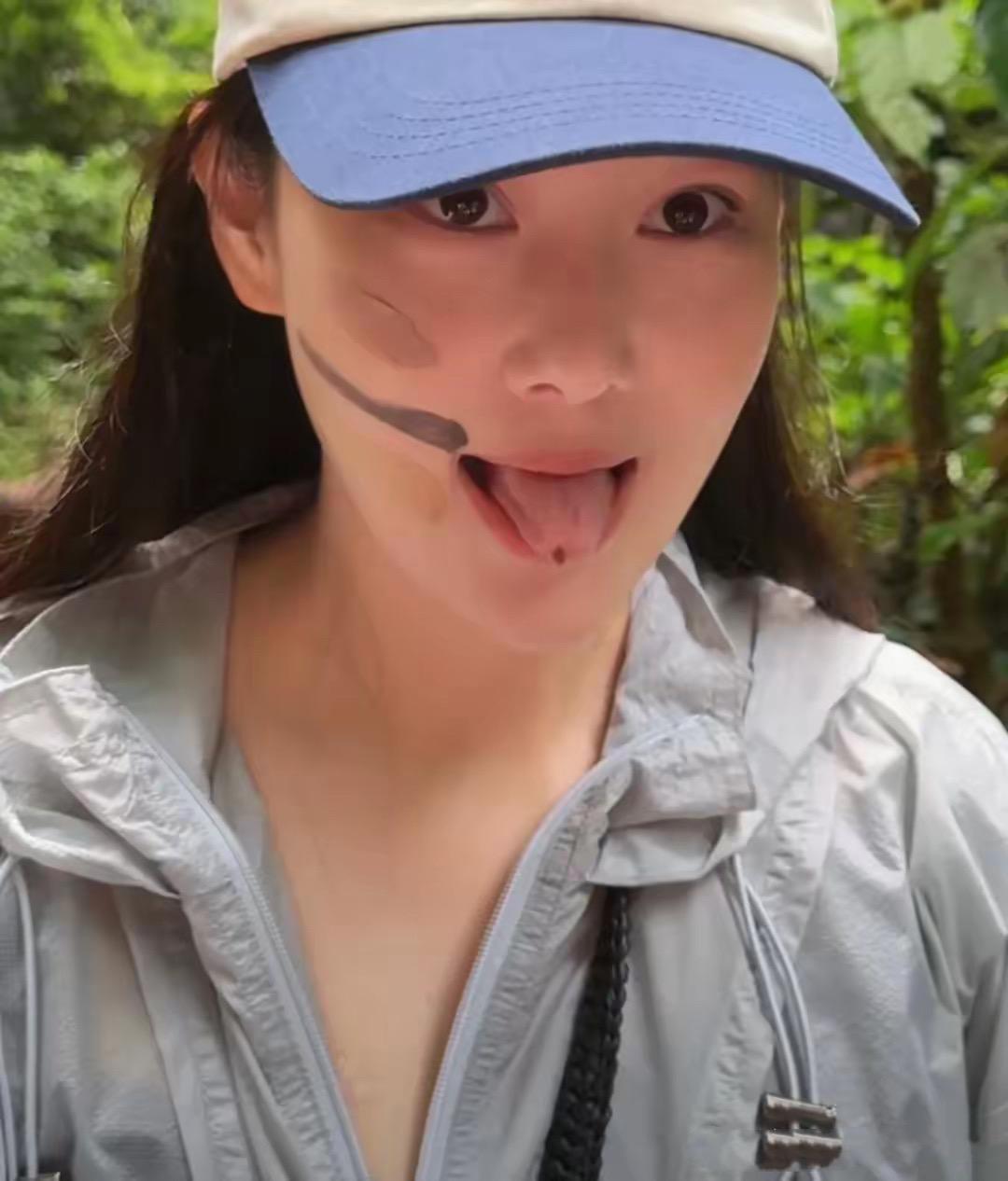 爲了讓粉絲們確認自己是真正的喫了活螞蟻,張馨予還伸出舌頭給大家看。她的舌尖上,有被咀嚼過的螞蟻。張馨予真是太可愛了,喫活螞蟻還要錄一個過程。