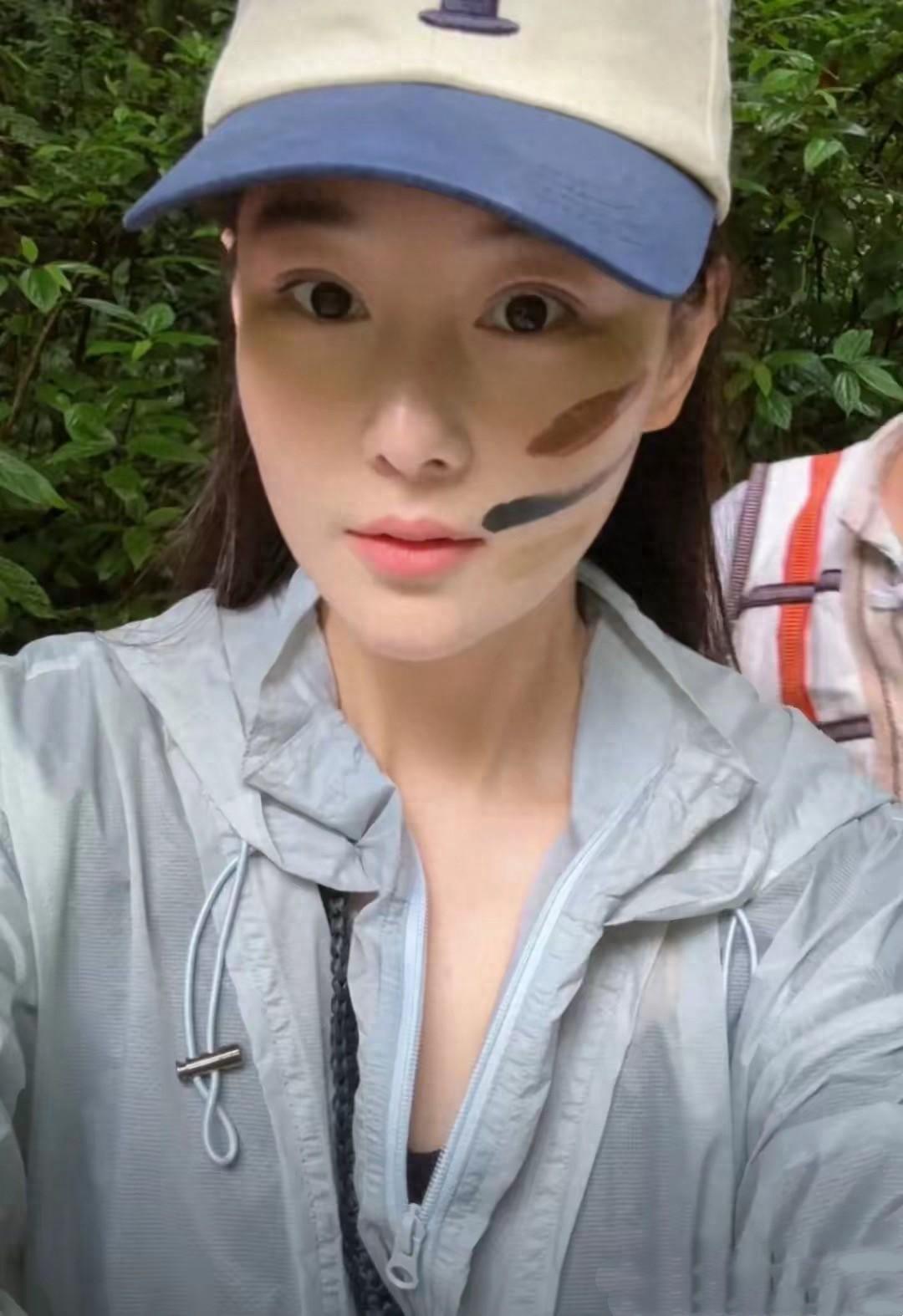 當天張馨予畫着淡妝,穿了一件霧霾藍的衝鋒衣,她還畫了花臉,讓精緻的長相更多了一點狂野和酷颯。
