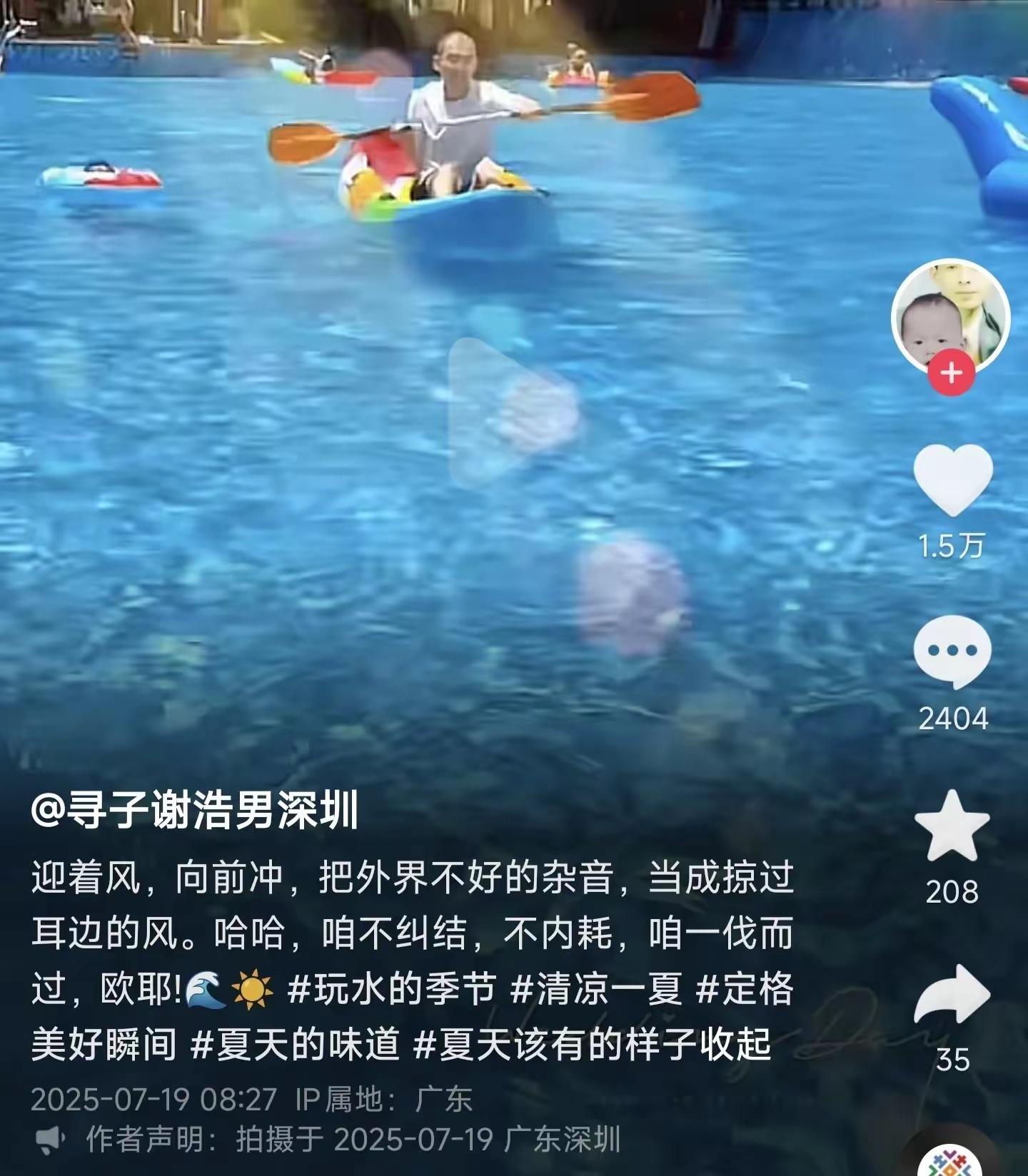 這些天許健華在新疆旅遊帶貨,老謝也沒有閒着,他也發了自己劃小船的水平。並且配文:迎着風,向前衝,把外界不好的雜音,當成掠過耳畔的風。