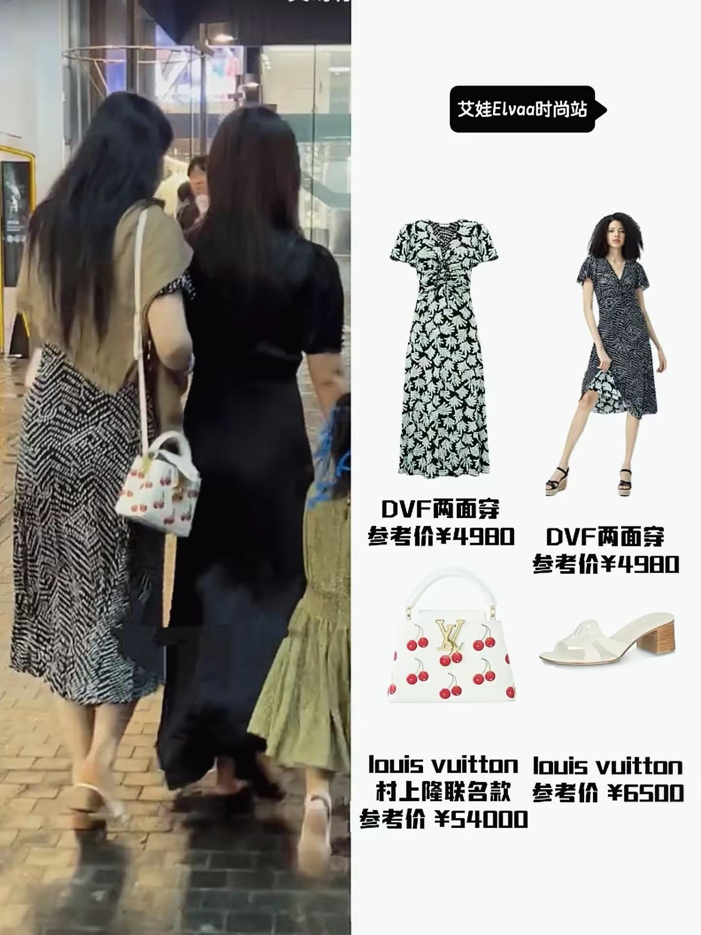 劉亦菲本人一點都不胖,即便是出現在鏡頭裏也是那種“剛剛好”的身材。她穿着雙面連衣裙,揹着LV的村上隆聯名款櫻桃包包,很洋氣也精緻。