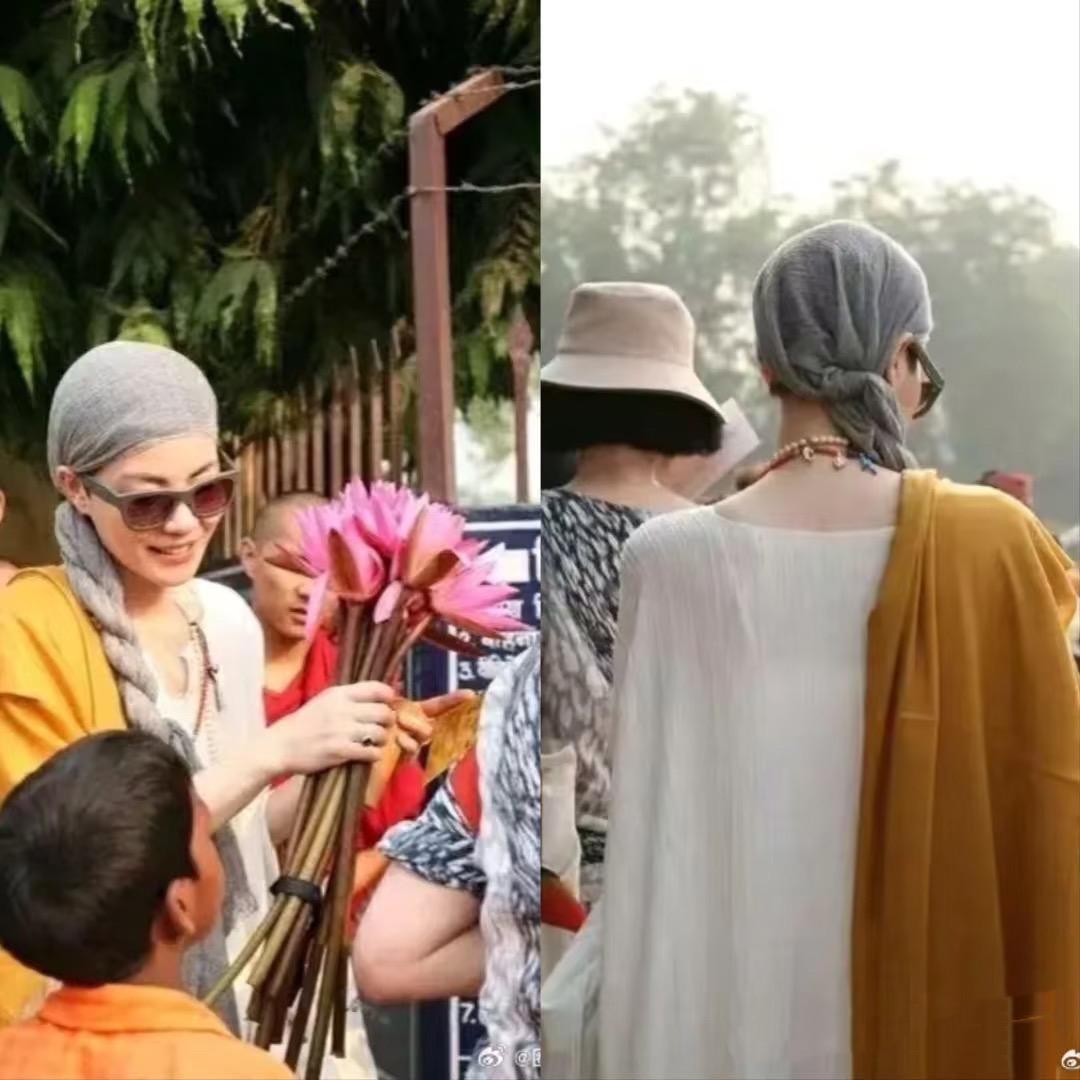 印度禮佛的時候,王菲的穿着打扮也是非常清新脫俗。她穿着撞色的僧袍,戴着灰色頭巾,有一種更溫婉的氣質傳遞出來。