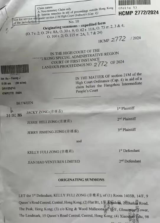 3名私生子起訴宗馥莉,案件的最新進展、宗繼昌等人的起訴書重要文件被曝光,從中我們可以看到2個重大的信息。