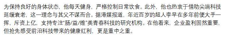 已經58歲的李澤楷,在2024《福布斯》香港富豪榜上排名19,個人財富高達44億美元,約人民幣314億元。據悉,他現在對生命科學領域興趣漸濃,正投入大筆資金研究緩衰科技,一邊延續財富傳奇,一邊琢磨怎麼延緩時光。