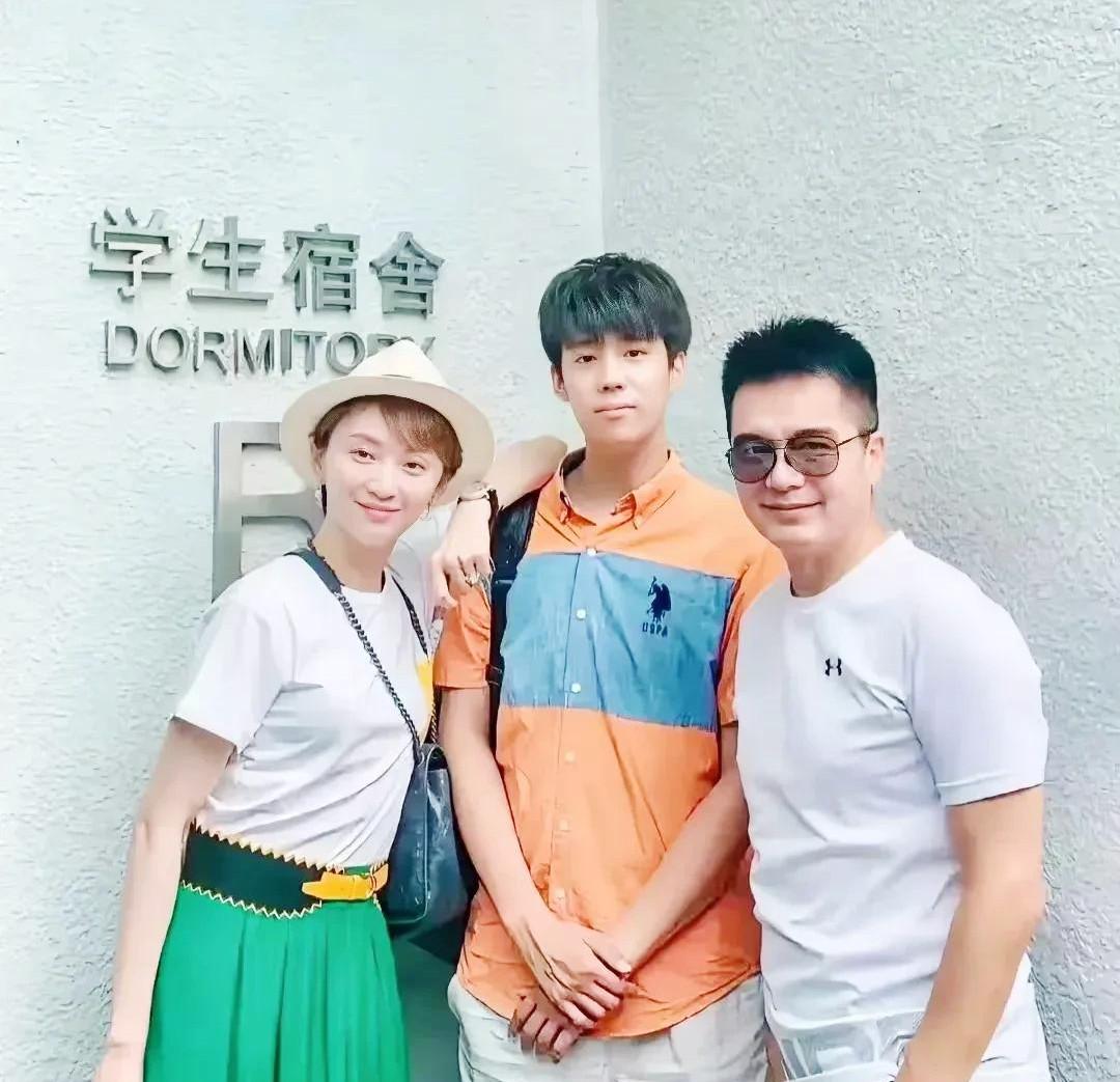 61歲許亞軍和四婚妻子出遊,妻子一身綠裝太惹眼,兒子比爸高半頭