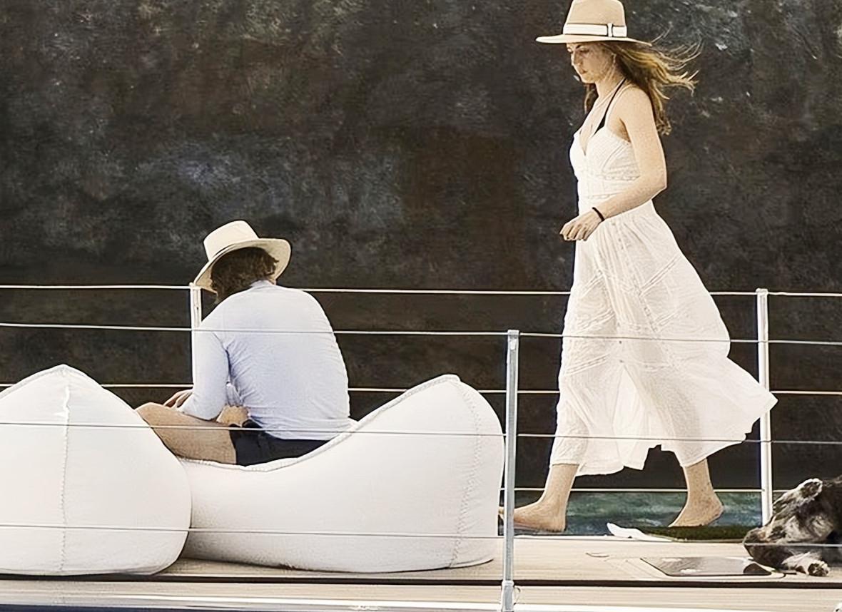 度假穿搭是愛情的皮膚,藏着最鬆弛的親密。阿湯哥與安娜在梅諾卡島的遊艇造型,恰如葉芝所說:“愛情是穿過靈魂的火焰”,既保持獨立姿態,又透着共生的溫暖。