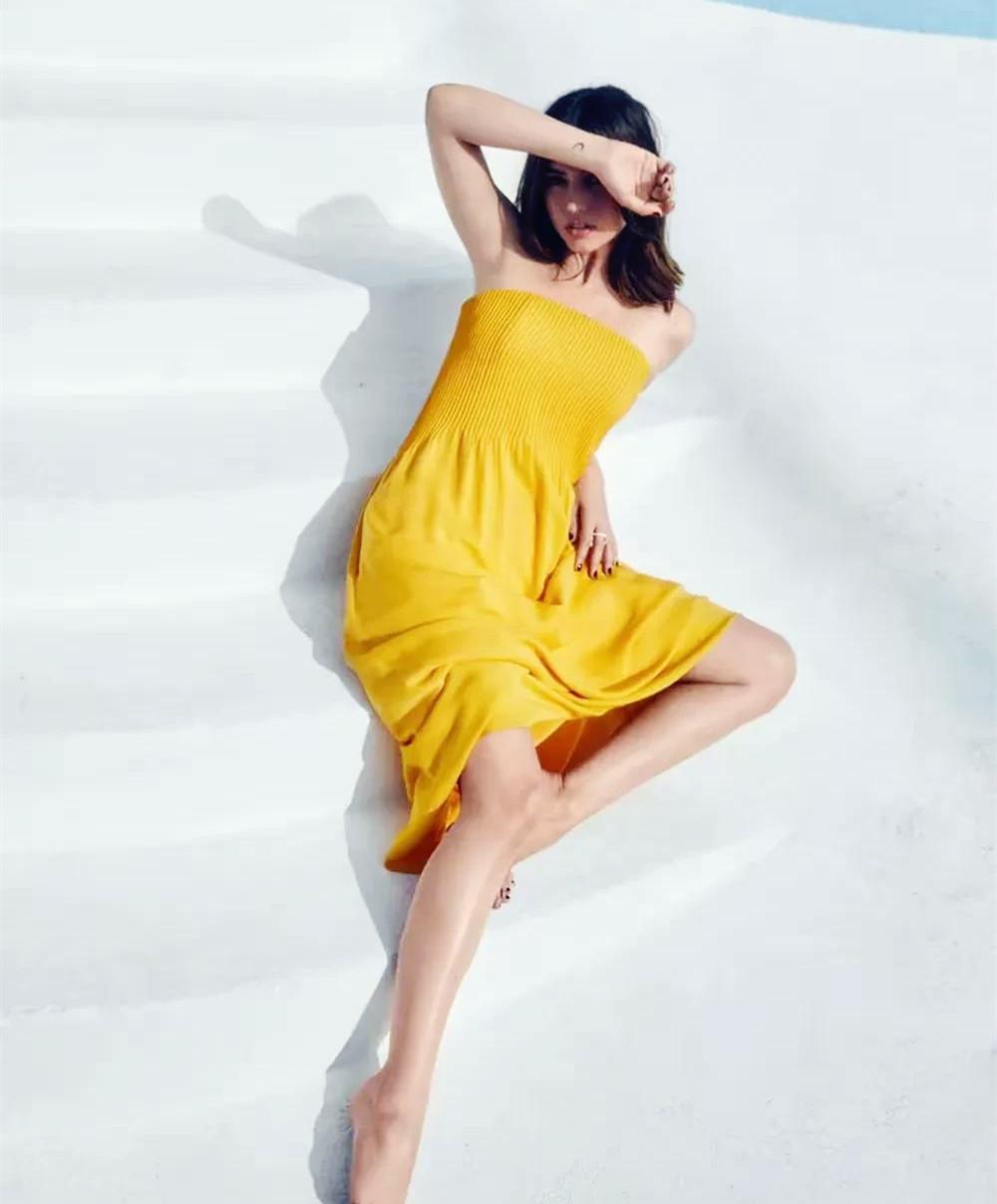 最惹眼的是她腕間的金色手鐲,在陽光下折射出細碎光芒,正是阿湯哥贈禮清單裏的 “每個女孩都會喜歡的東西”,低調宣告着被珍視的幸福。當她坐在甲板的藤椅上讀詩時,吊帶裙的流蘇與書頁的翻動聲共振,構成一幅 “歲月靜好” 的具象畫。