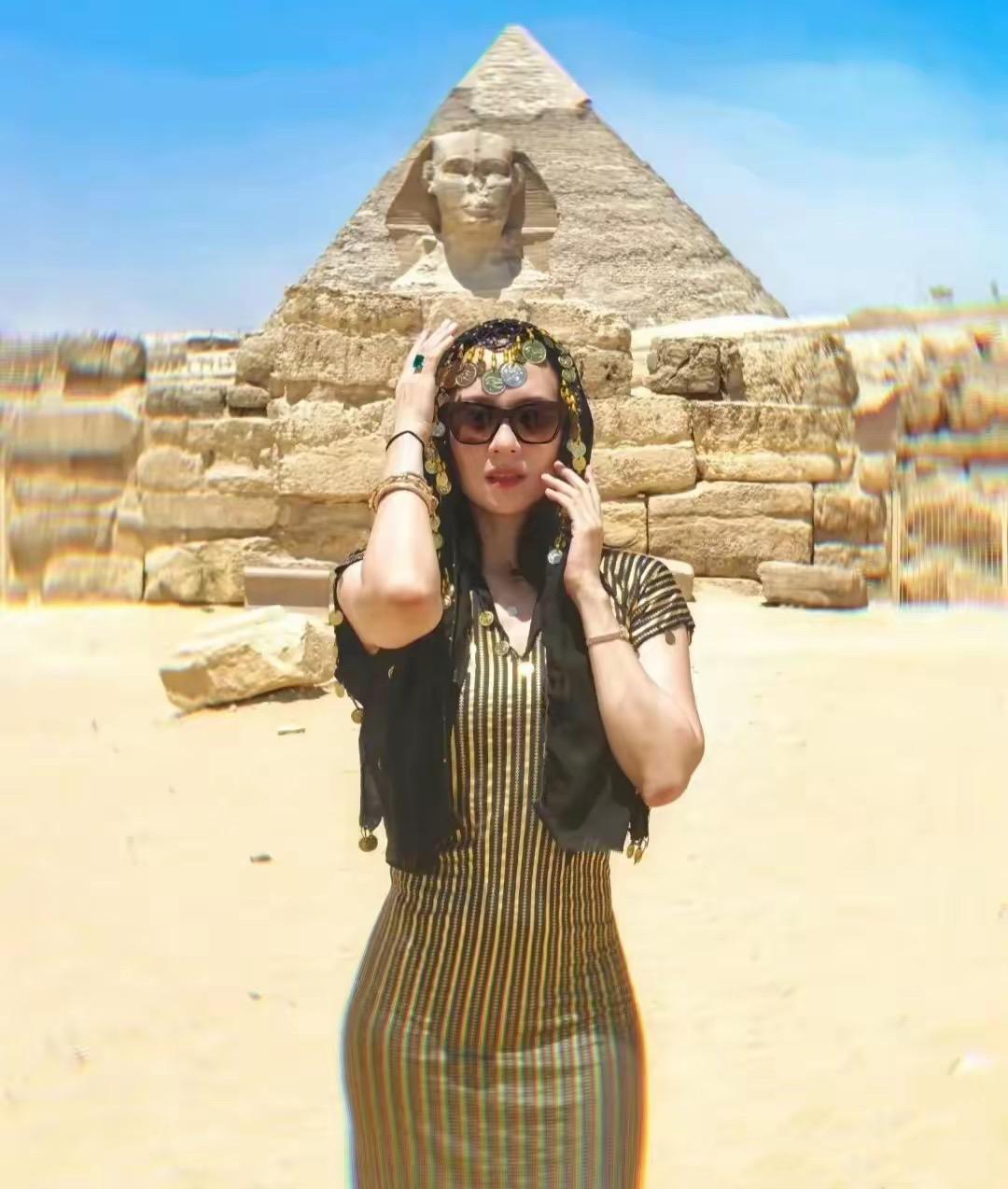46歲章子怡埃及瘋玩,穿“掐腰裙”身材堅挺,女王氣質碾壓森林北