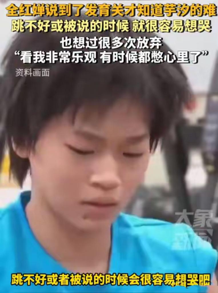 全紅嬋明顯的胖了不少、體力也比不上從前。做卷腹運動的時候,分明力不從心了。除了傷病、發育期也成爲全紅嬋很難逾越的痛。