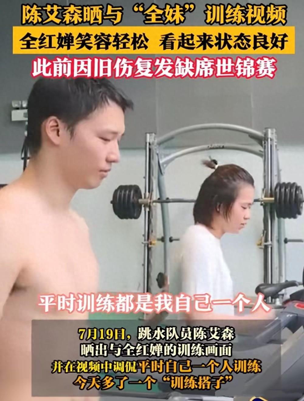 陳艾森發視頻,公開了自己和全紅嬋一起健身的視頻。他說平時訓練都是我自己一個人,今天多了個“訓練搭子”。