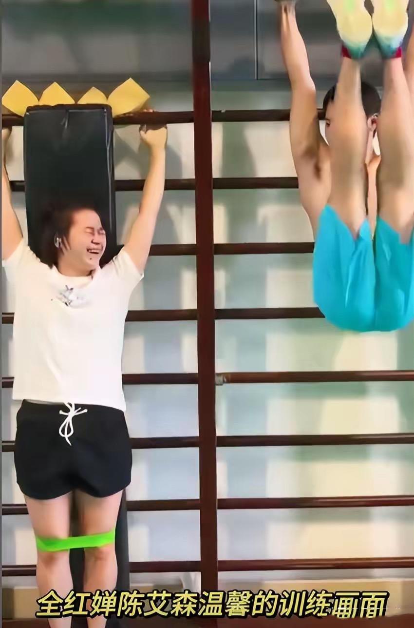 安排全紅嬋和陳艾森一起訓練,師兄妹也可以更好的交流經驗。畫面裏,陳艾森靈活的做着卷腹動作,非常輕盈標準。
