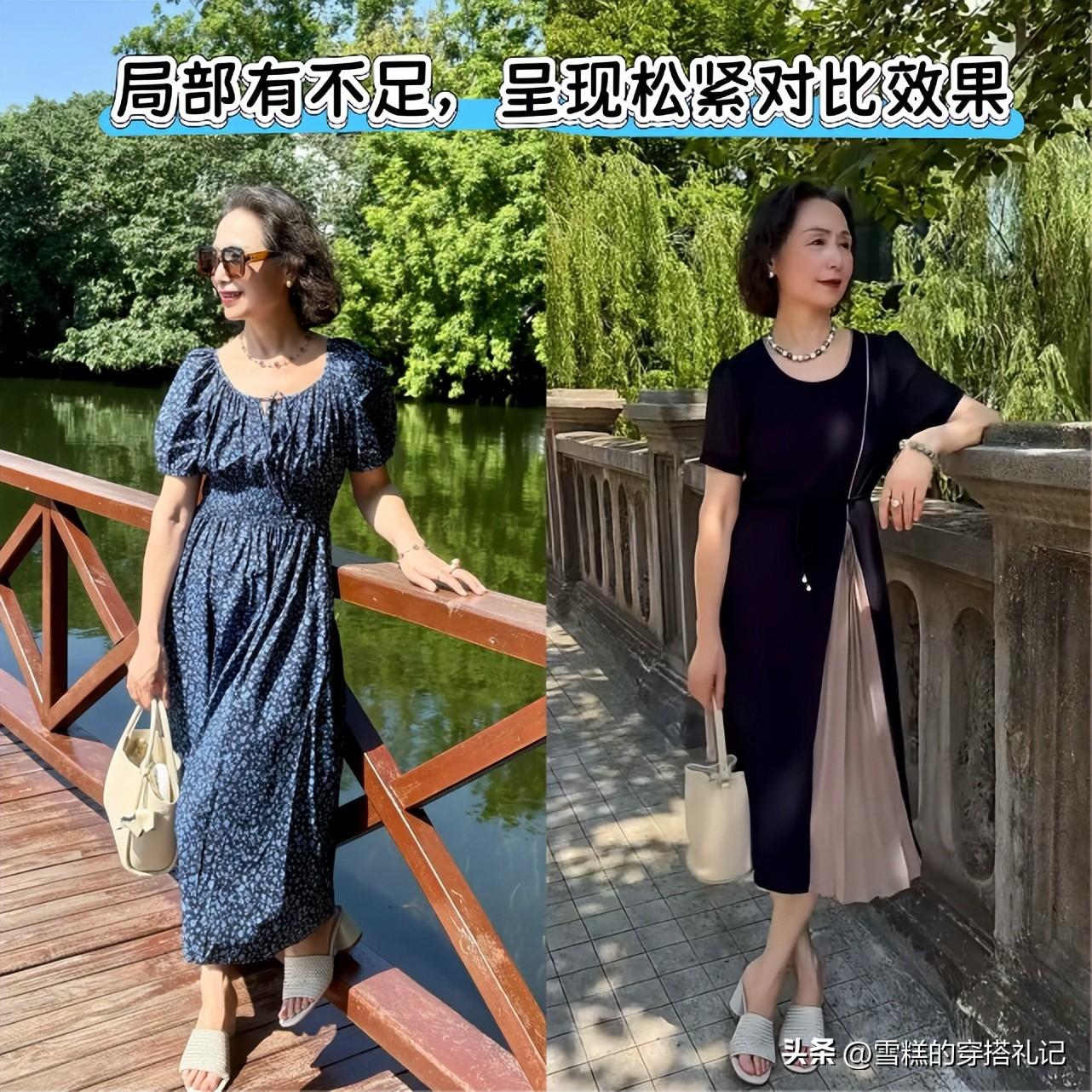 像連衣裙或者是連體長褲的搭配,就非常有必要入手一些自帶高腰款式設計的,如果沒有的話,我們自己可以加入一些腰帶或者腰封的元素,在高腰的位置進行勾勒,不僅整體的利落感能夠凸顯,而且其實對於上了年紀的女性而言將標準的比例身材展現也能夠彰顯好的身形狀態和氣質。