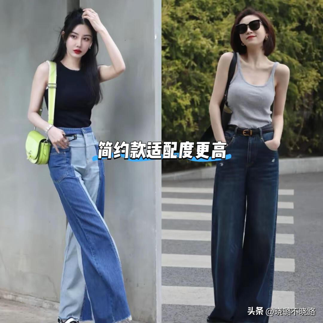 2.彩色吊帶+牛仔闊腿褲,突出造型亮點