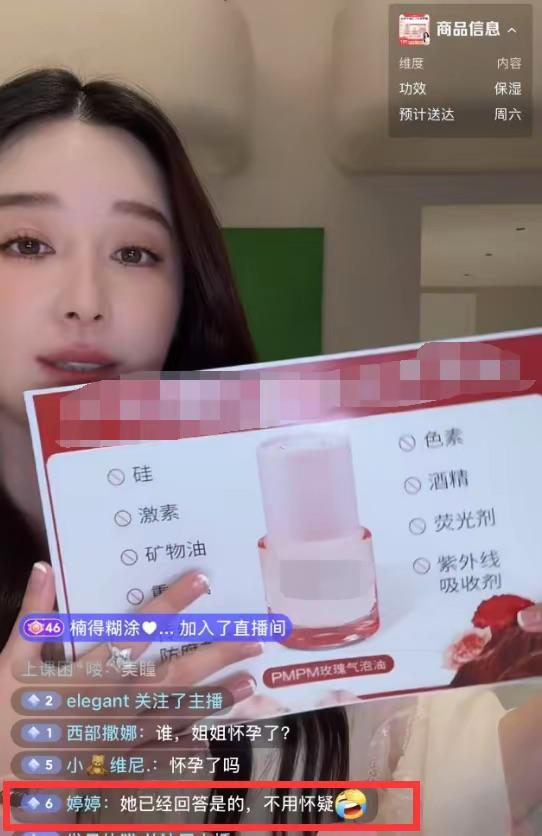 一時間,直播間就炸鍋了。姐姐懷孕了嗎?簡直不敢相信、太驚喜了。不少粉絲送驚喜、送祝福,直播間裏氛圍非常歡樂。