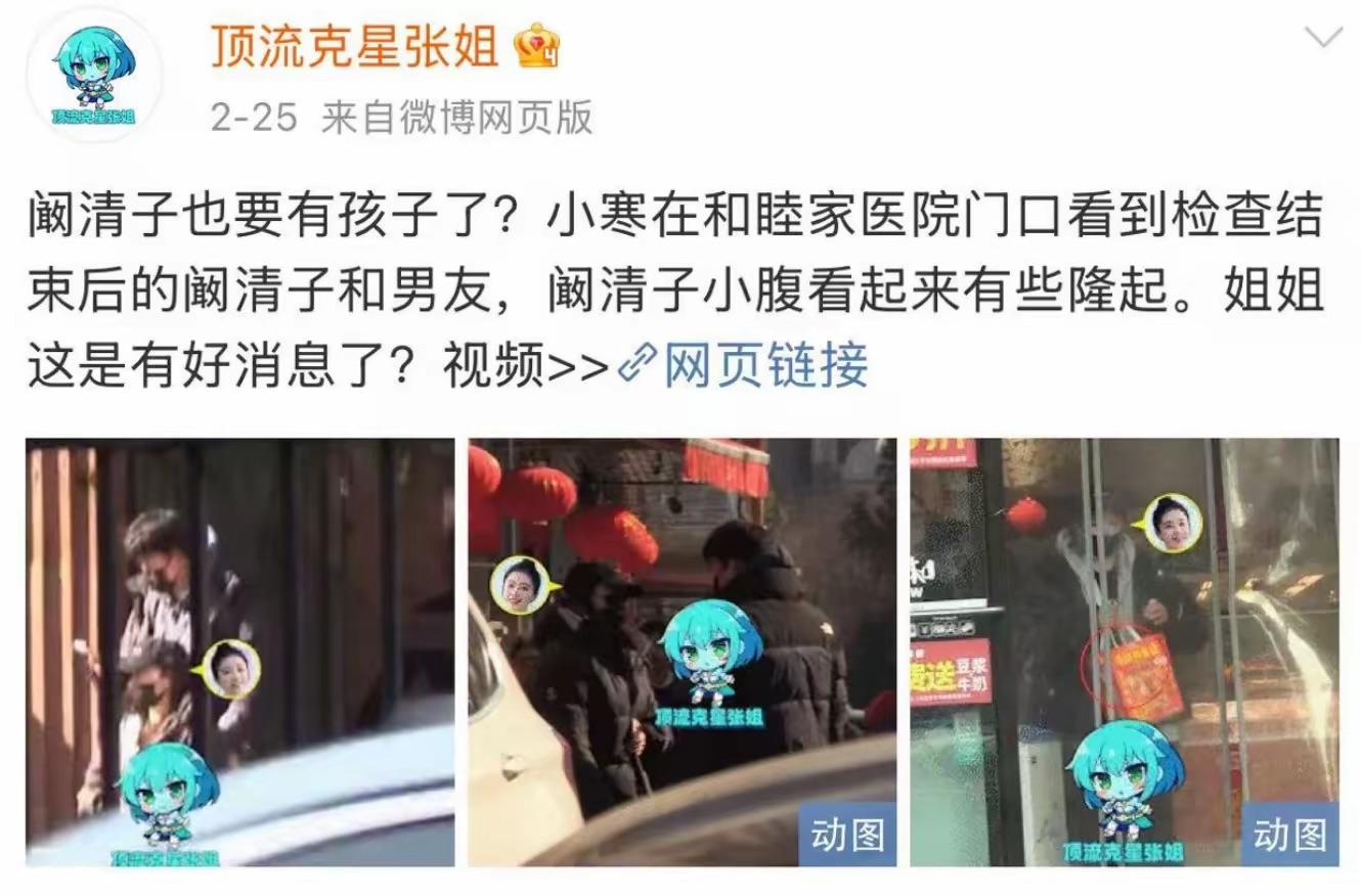 其實早在2月份的時候,二人就被拍到在醫院門口走出,那時候闞清子的校服有些凸起,應該是就已經懷孕了。
