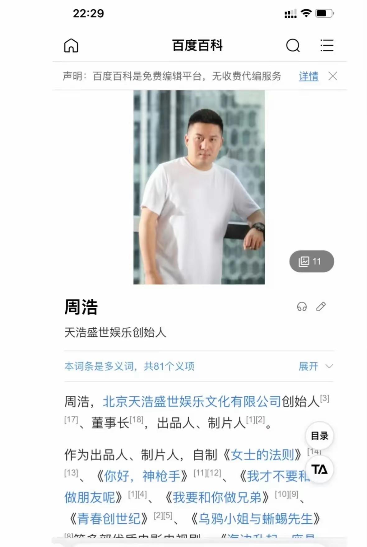 隨後闞清子男友的身份也被扒出來,他是天浩盛世娛樂的創始人周浩,是出品人、製片人。自制了《女士法則》、《你好,神槍手》、《我纔不好和你做朋友呢》等,旗下有陳飛宇、劉敏濤、戚薇等多位明星。