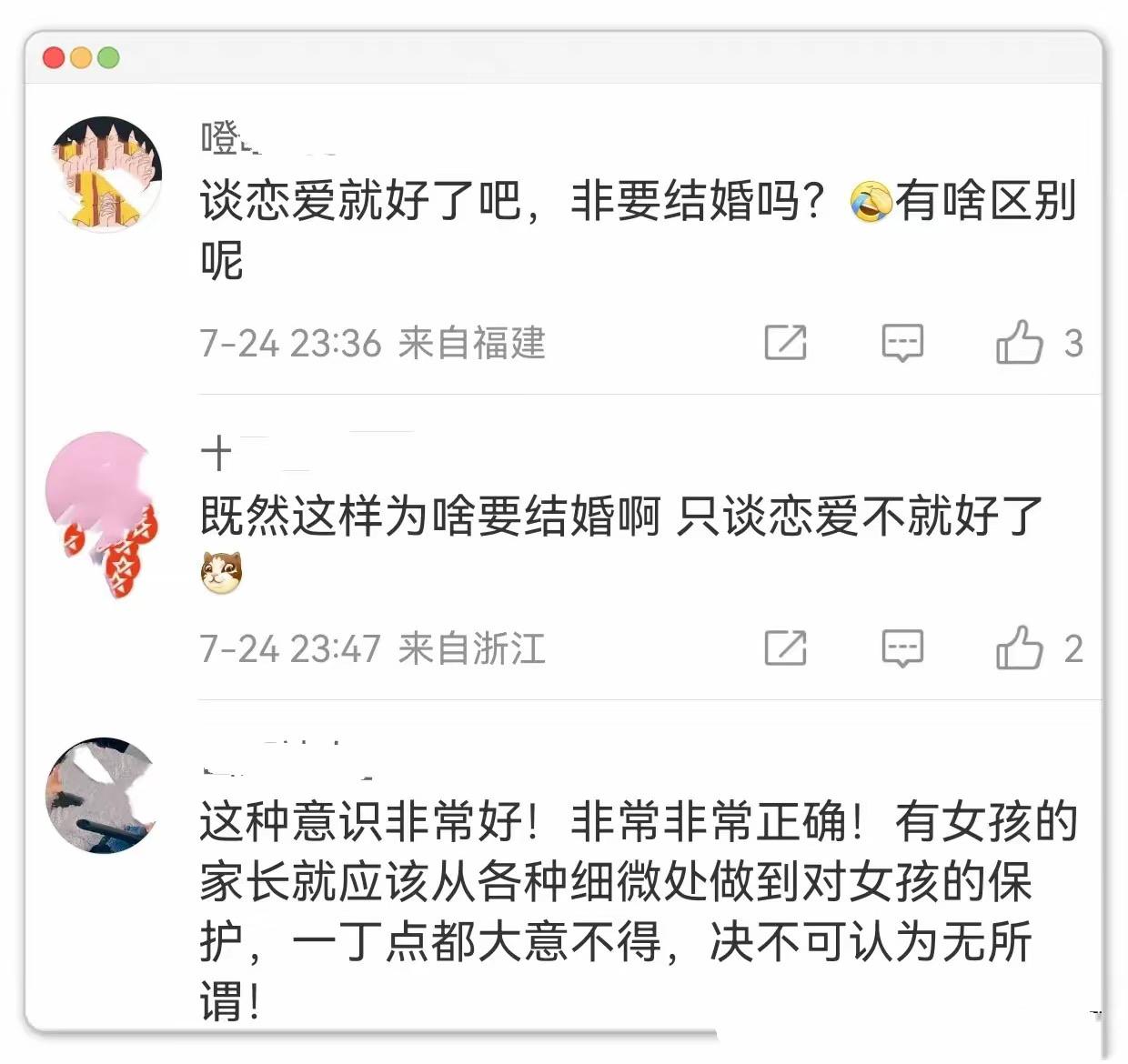 也有網友表示:既然這樣爲啥要結婚啊?只談戀愛不就好了嗎?