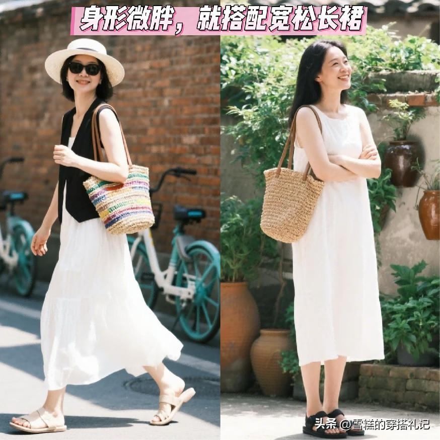 你的事情狀態小贅肉比較多又或者是微胖感會比較明顯的話,在這裏提醒大家一定要搭配寬鬆一些的裙子來進行搭配,並且整體視覺的輪廓的走向還是要保證流暢又明朗的效果呢。
