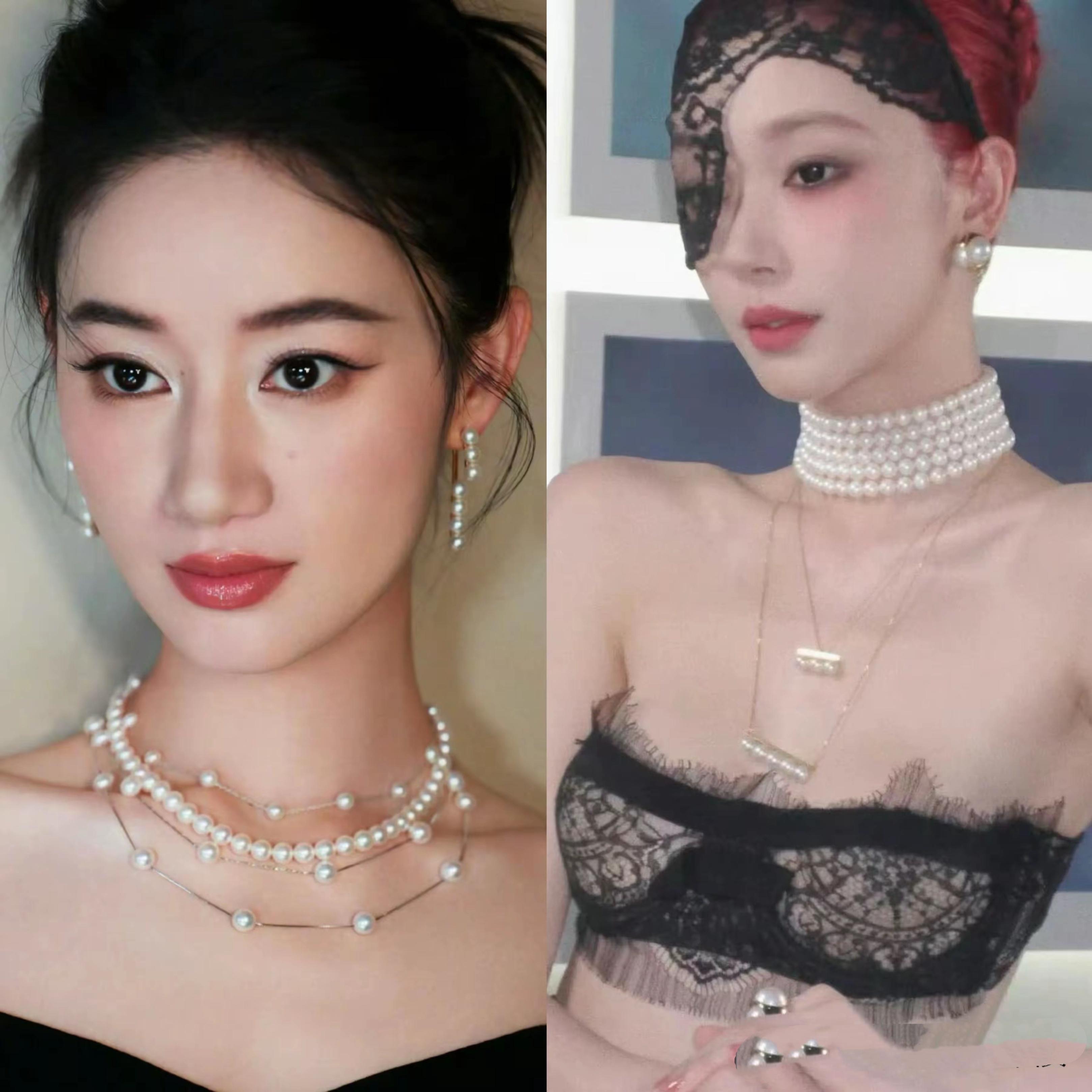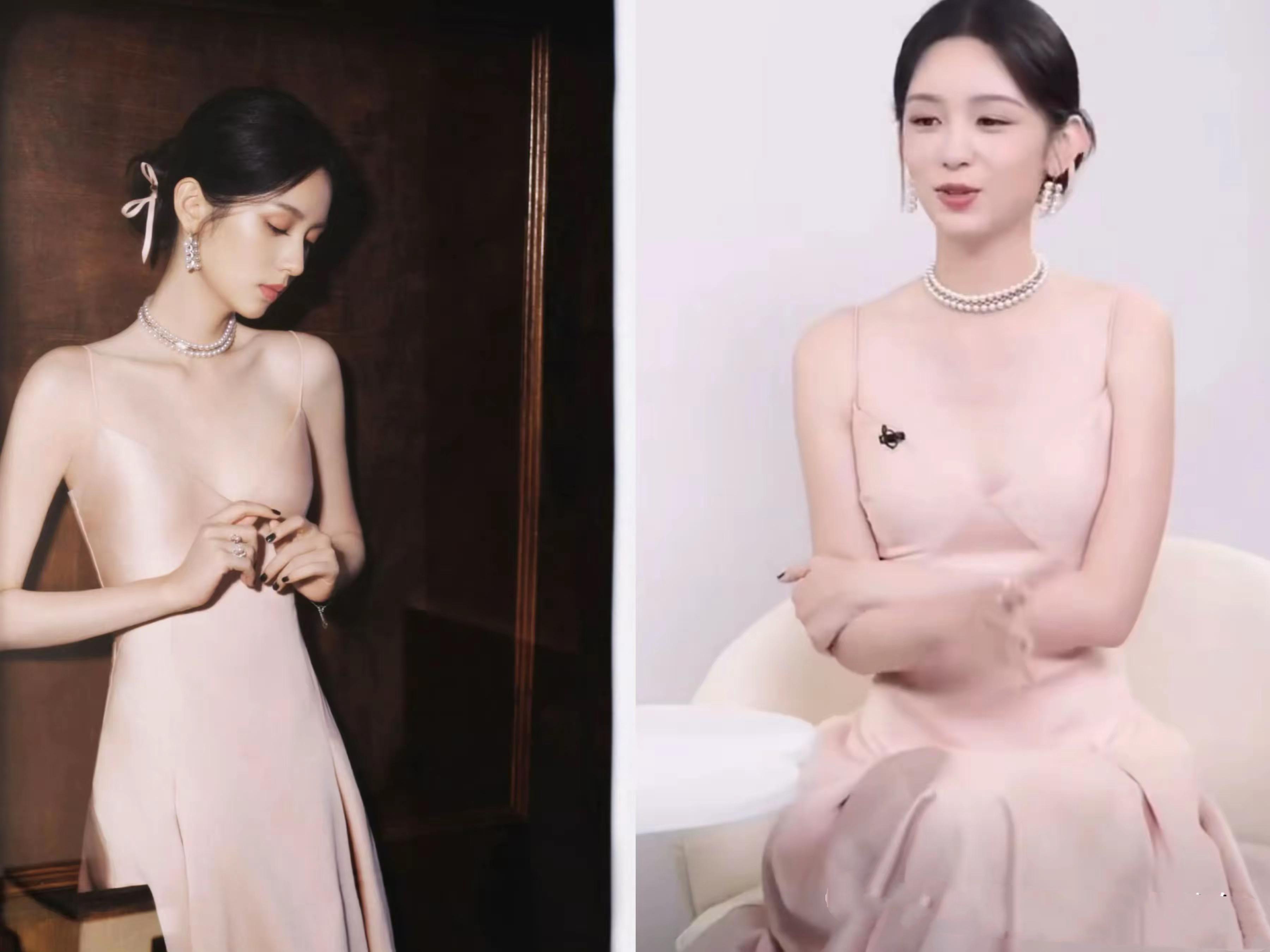 換上牀層的 珍珠項鍊,周也氣質更加溫婉了許多。珍珠項鍊、珍珠耳環,就是絕美的搭配。粉色吊帶裙、閃耀着光澤的珍珠首飾,散發着端莊之美。