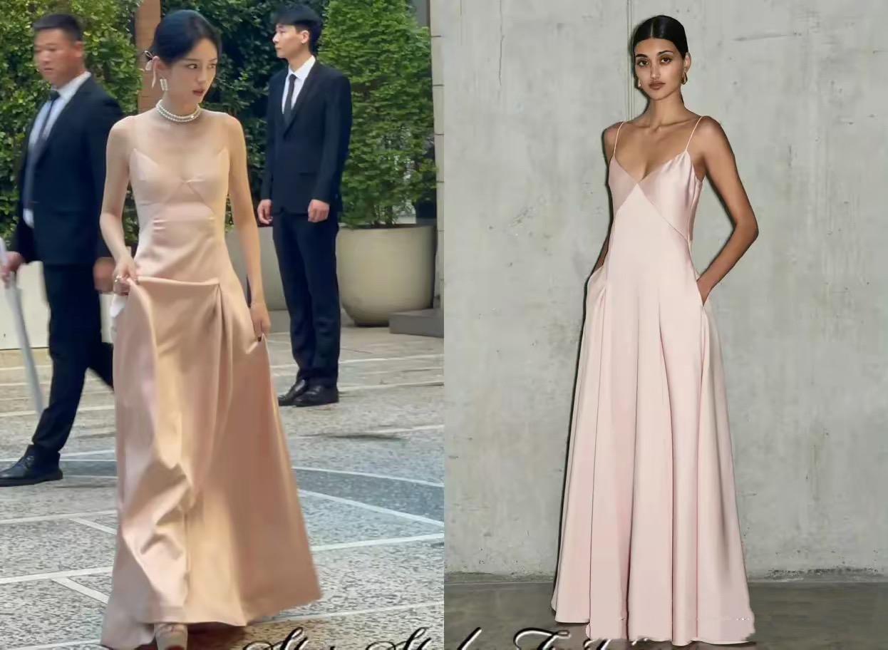 周也粉色吊帶裙、美如富家千金